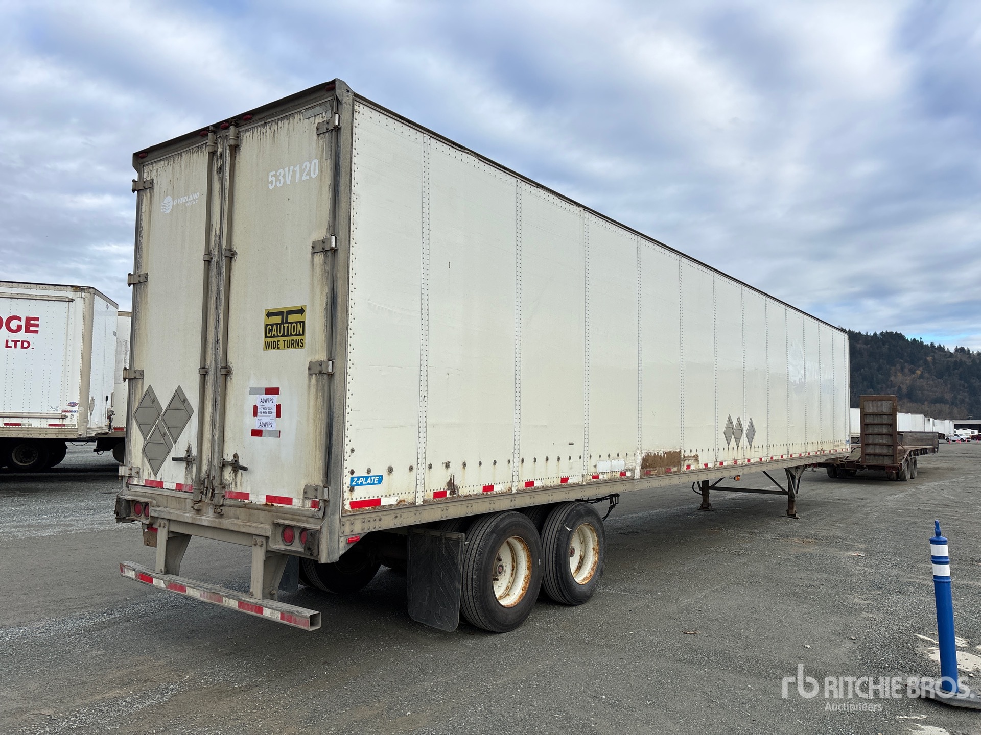 Cadre combiné aluminium/acier, suspension pneumatique coulissante, plancher de bois franc, porte battante, pneus 295/75R22.5, PNBV de 31 725 kg