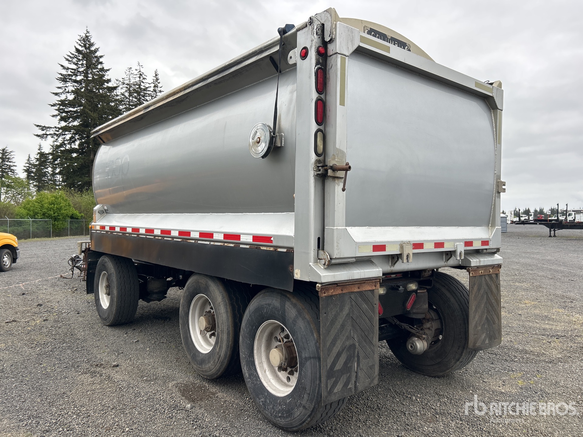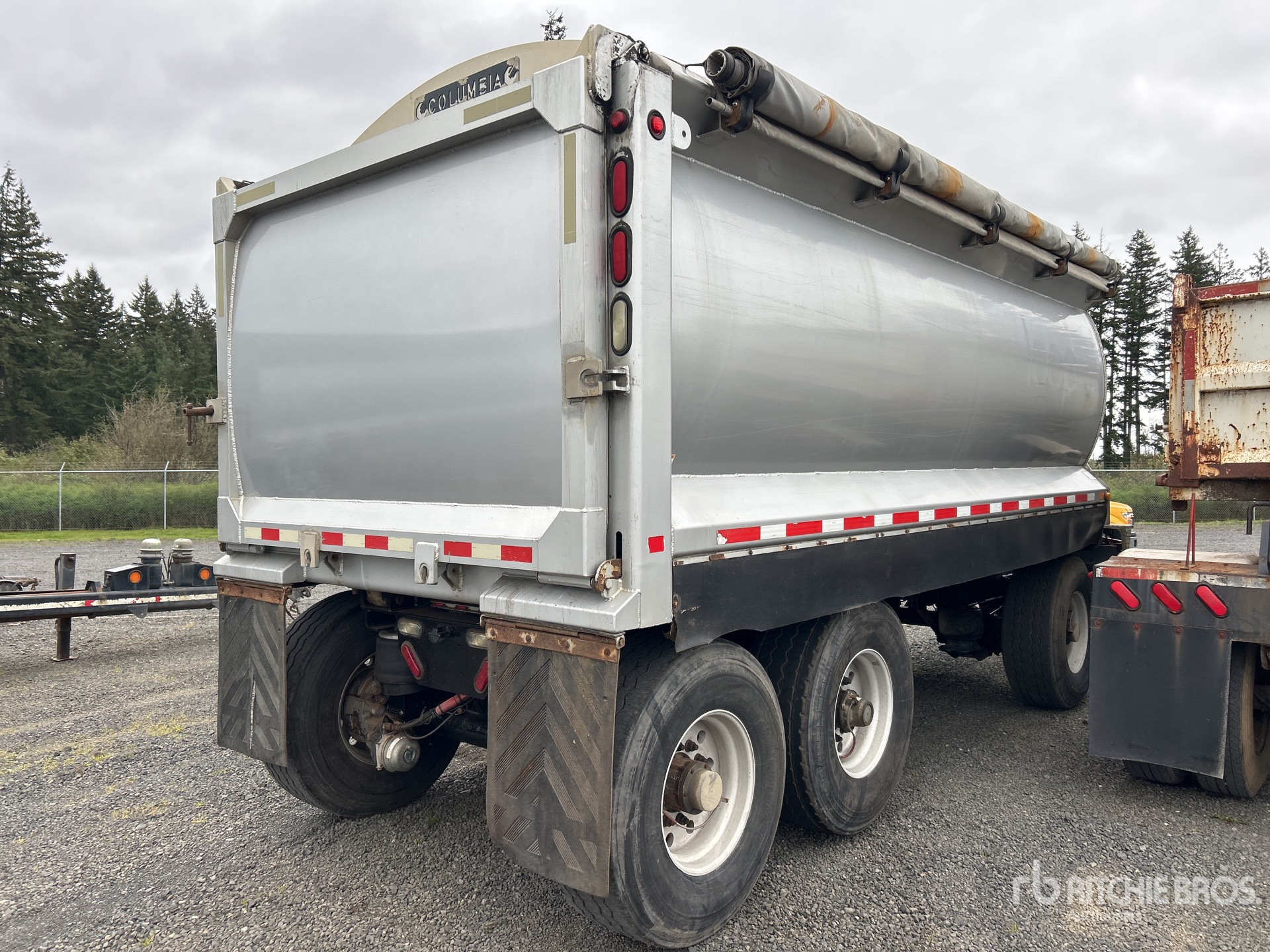 Attelage à anneau Lunette, suspension pneumatique, essieux relevables, caisse de 5,38 m (17 pi 8 po), parois latérales de 1,52 m (60 po), caisse en acier, bâche à enroulement électrique, roues en aluminium, pneus super simples 425/65R22.5