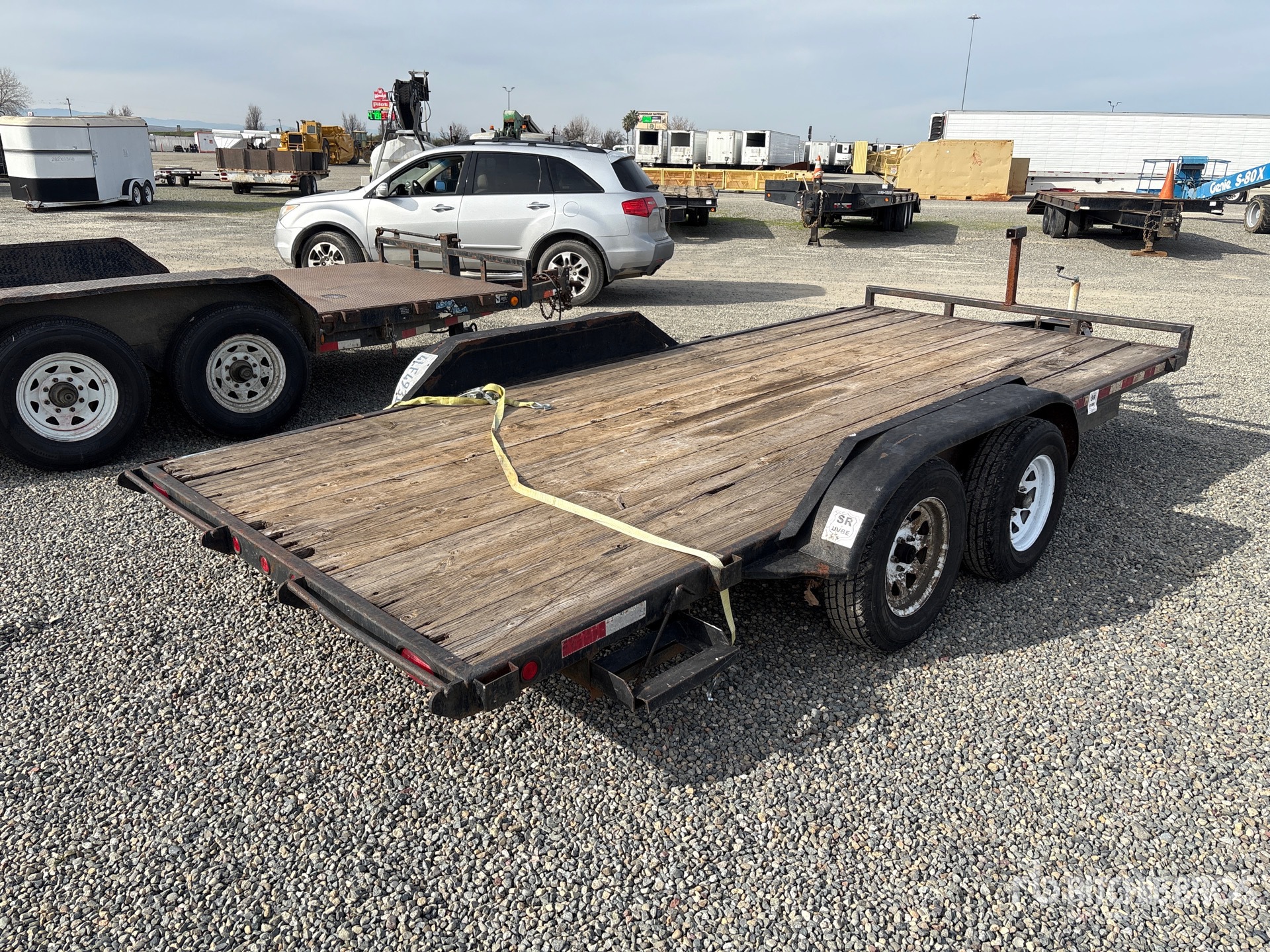 Attelage à boule, suspension à ressorts, plateau principal de 4,88 m, largeur de plateau utile de 2,13 m, plancher en bois, pneus 205/75R15