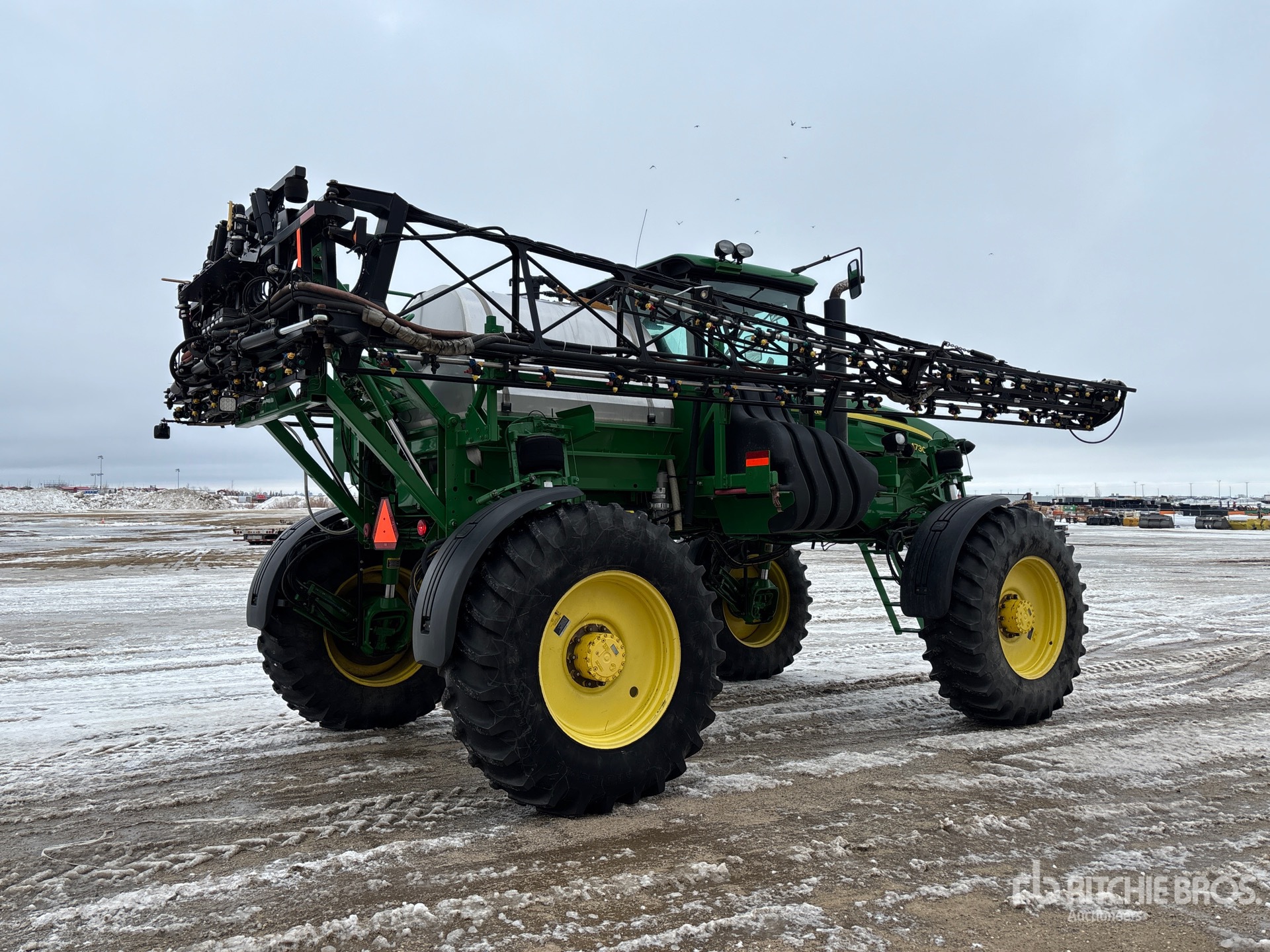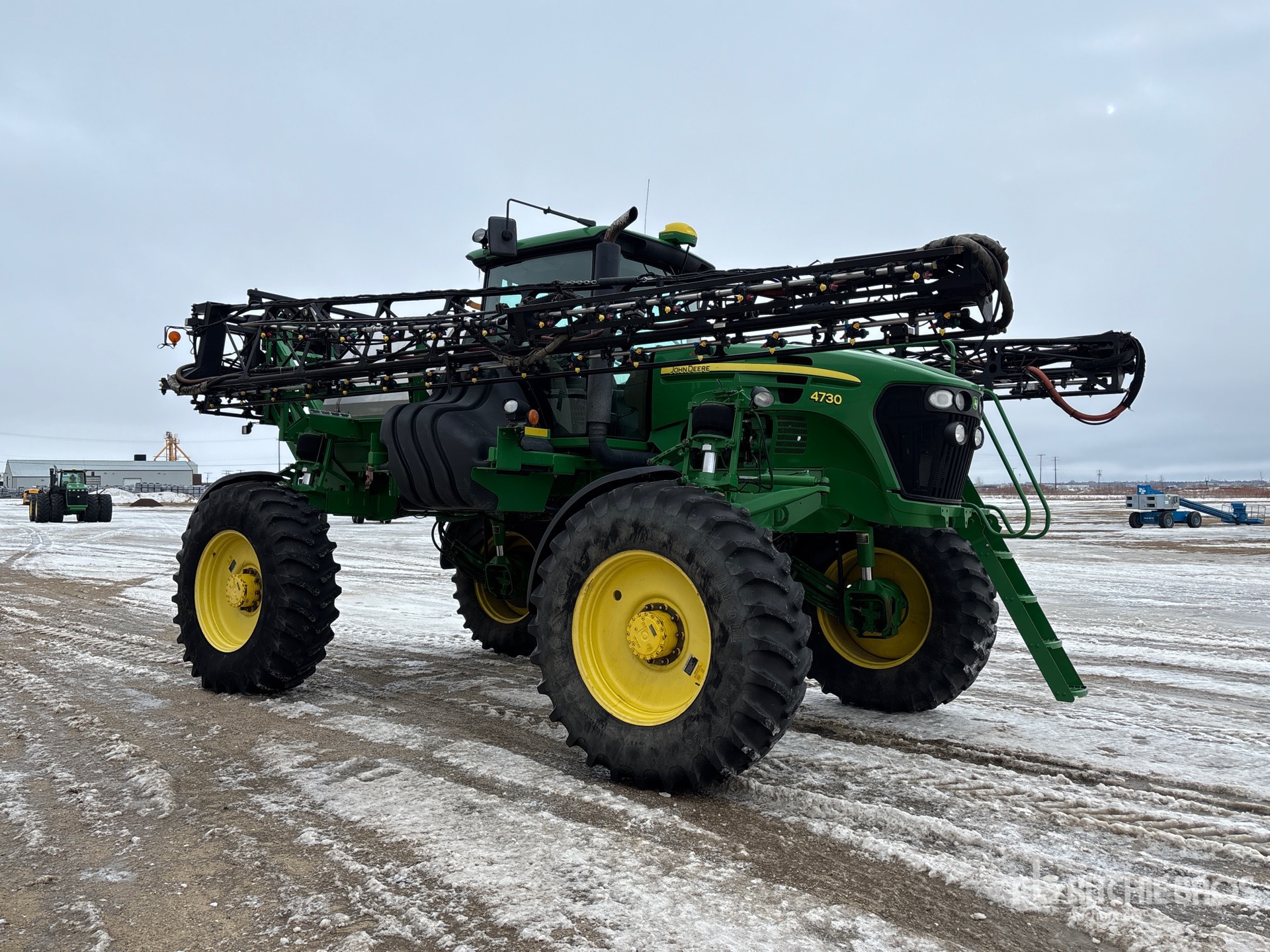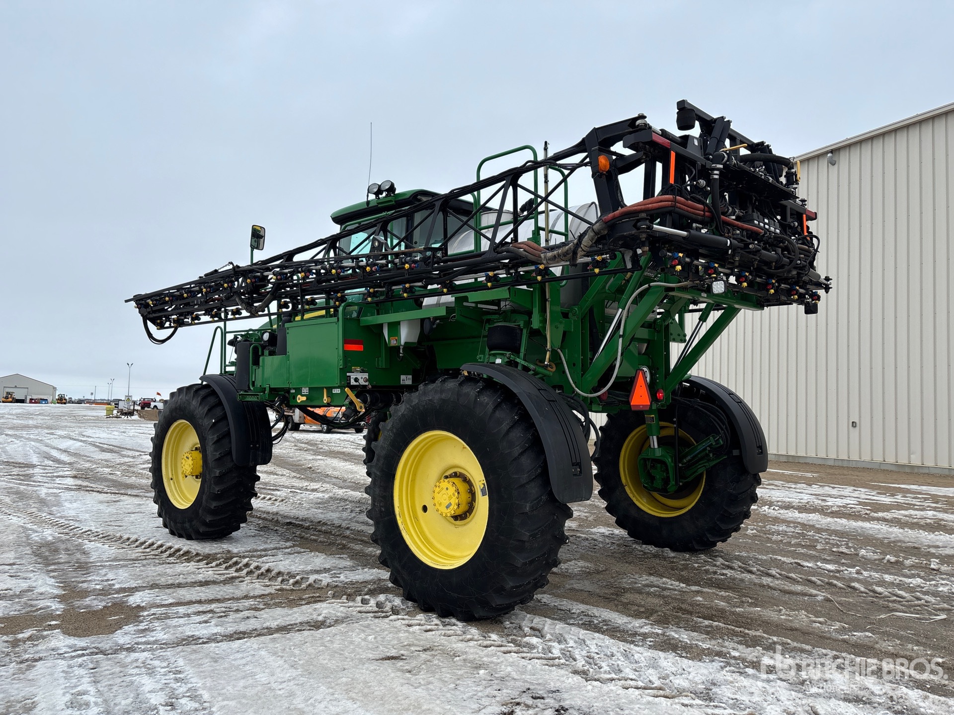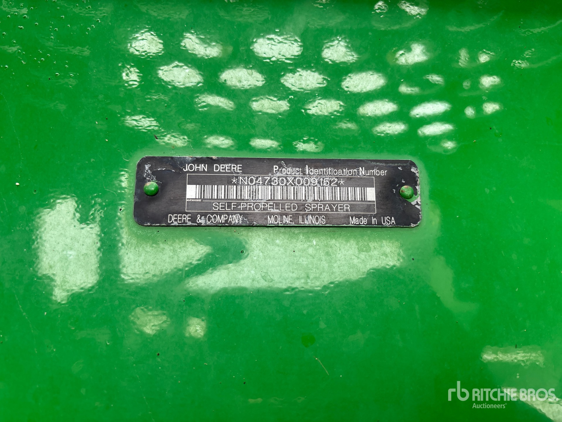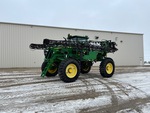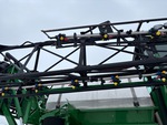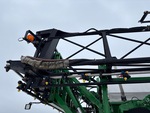 3911 heures machine affichées, transmission hydrostatique, climatisation, siège à suspension pneumatique, écran GS3 2630, antenne/récepteur StarFire 6000, système de pilotage automatique AutoTrac, activation SF1, étiquette EPA américaine 2010, conforme aux normes CARB, contrôle automatique de la hauteur de flèche, pompe hydraulique, réservoir en acier inoxydable de 800 gallons, réservoir de rinçage, 5 corps de buse, buses pour clôtures, commande à 7 sections, pneus 520/85R38, réglage hydraulique de l'essieu