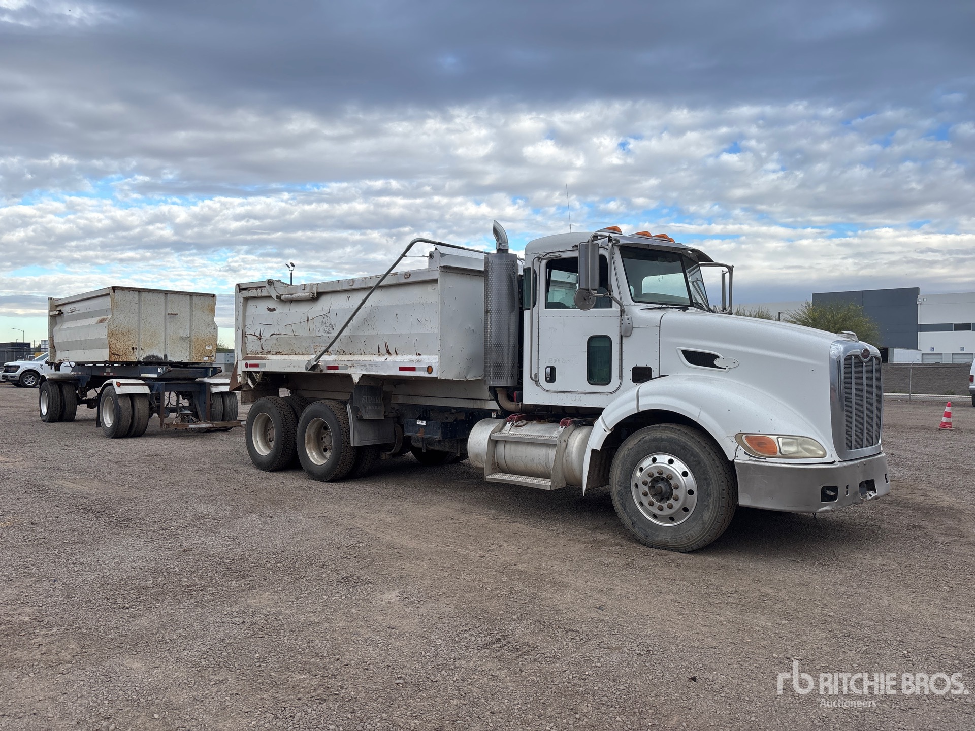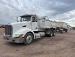 Moteur diesel Cummins ISM 370 6 cylindres 10,8 L, 25 770 heures moteur, transmission manuelle, essieu avant 5 443 kg, essieu arrière 17 237 kg, PTAC 22 688 kg, cabine à suspension pneumatique, pneus 11R22.5, suspension pneumatique, empattement 5,54 m, benne en acier de qualité supérieure de 4,57 m de long x 1,37 m de hauteur, bâche à enroulement électrique, attelage à anneau