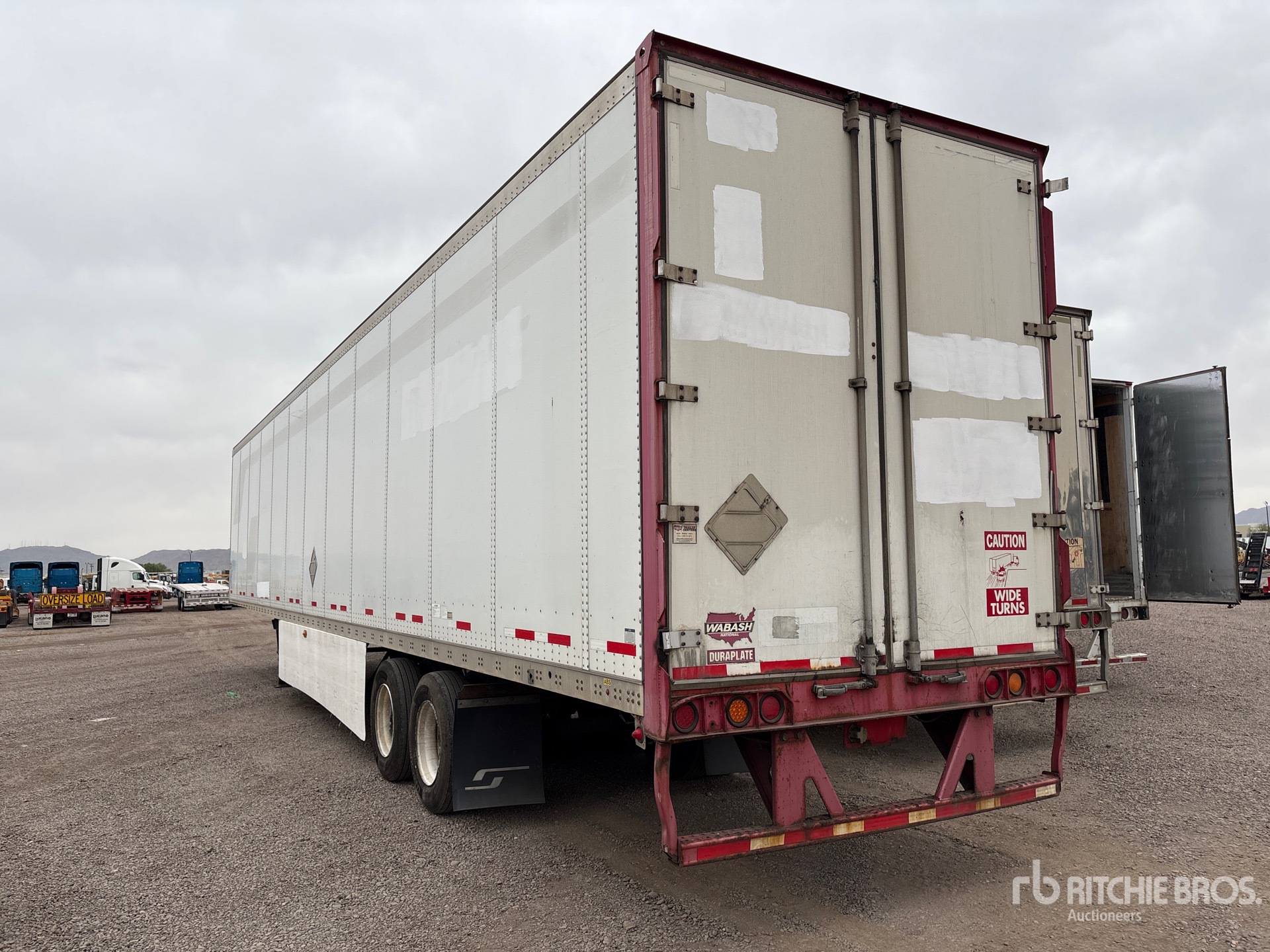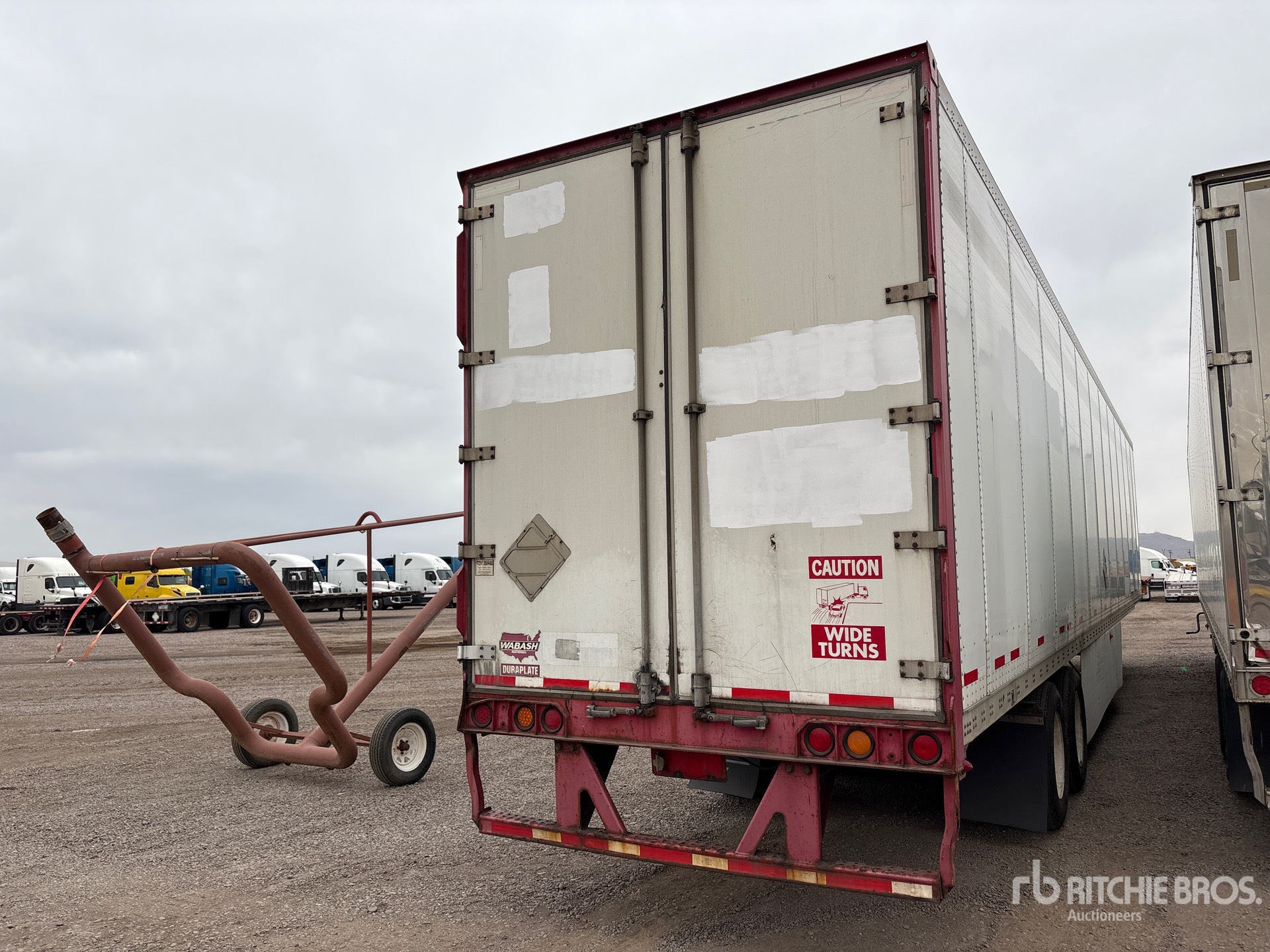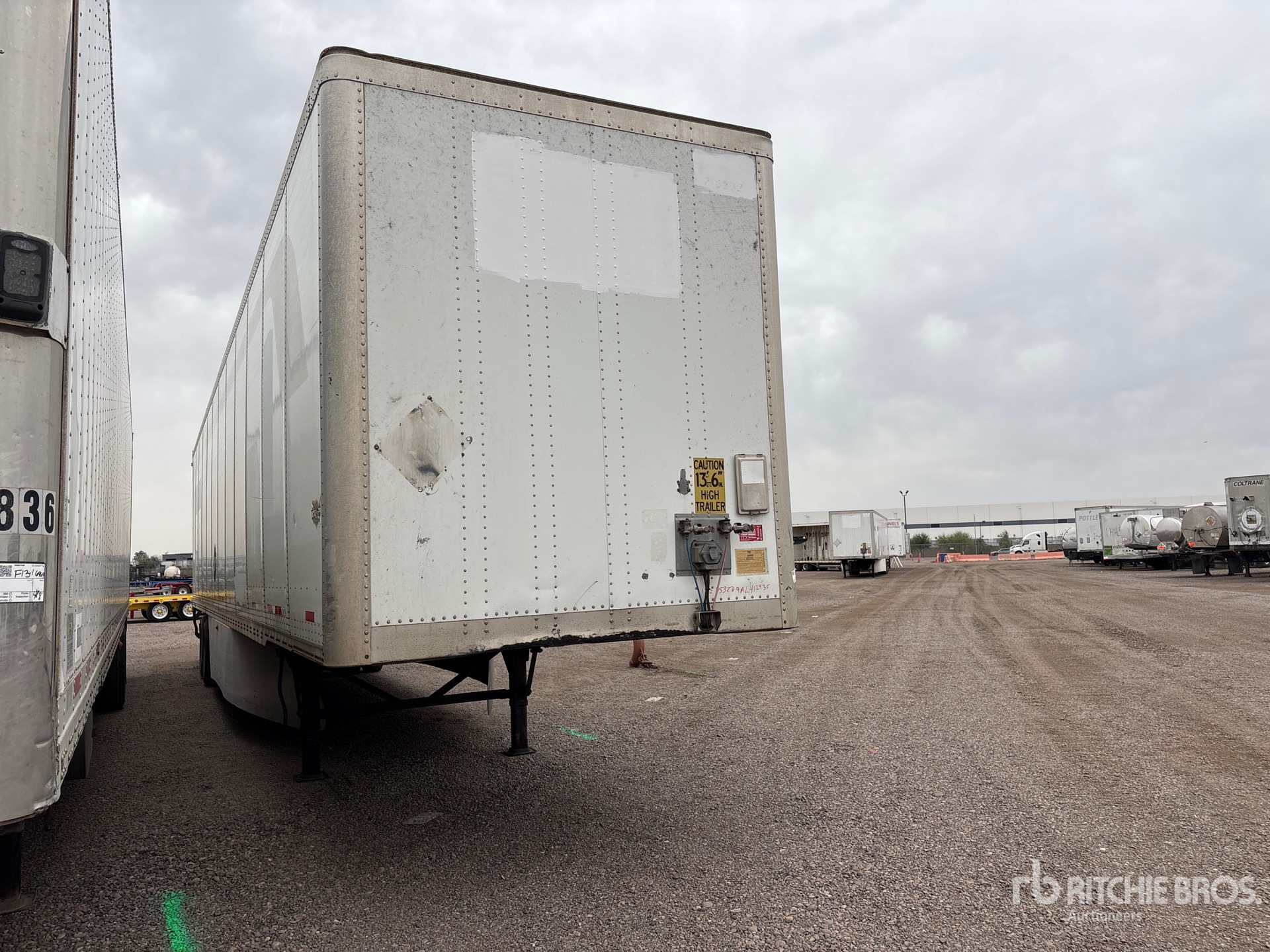 Situé sur la voie 9, emplacement 41, châssis mixte aluminium/acier, suspension coulissante à ressorts, jupes latérales, plancher de bois franc, porte battante, pneus 295/75R22.5, PTAC de 68 000 lb