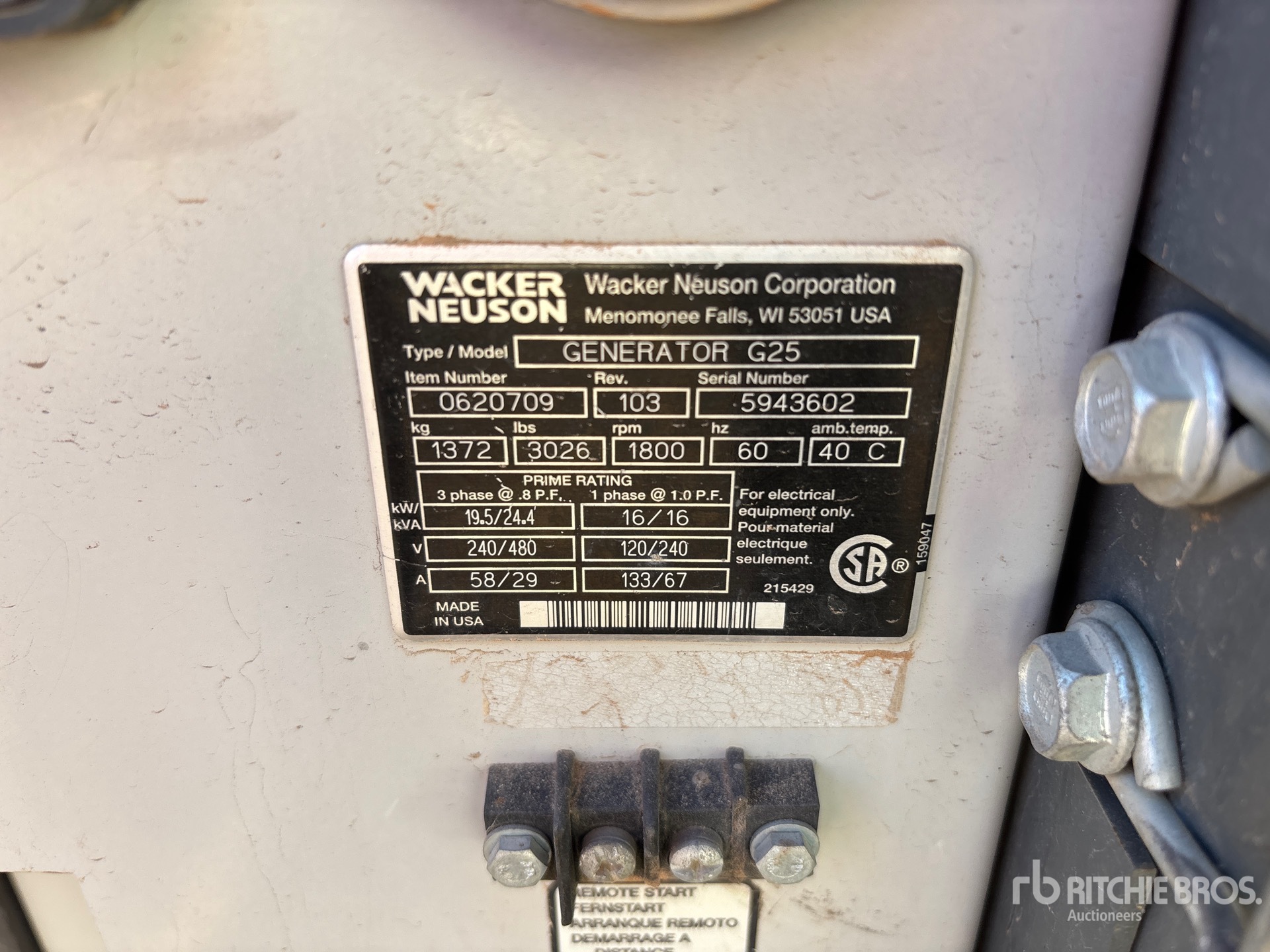 Les Informations détaillées de l’équipement sont d’une portée limitée, et les Encans Ritchie Bros. n’ont inspecté aucun autre aspect ou composant de l’équipement que ceux présentés expressément. Sauf indication précise, nous n’offrons aucune représentation ou garantie, officielle ou implicite, sur l’équipement ou ses composants, sans aucune limite de représentation ou de garantie en ce qui concerne la fonctionnalité, la conformité à toute norme de sécurité ou l’exigence de toute autorité ou agence de régulation en vigueur, l’adaptation à un quelconque usage, ou la valeur commerciale. Il vous est fortement conseillé d’effectuer votre propre inspection détaillée de l’équipement avant d’enchérir.