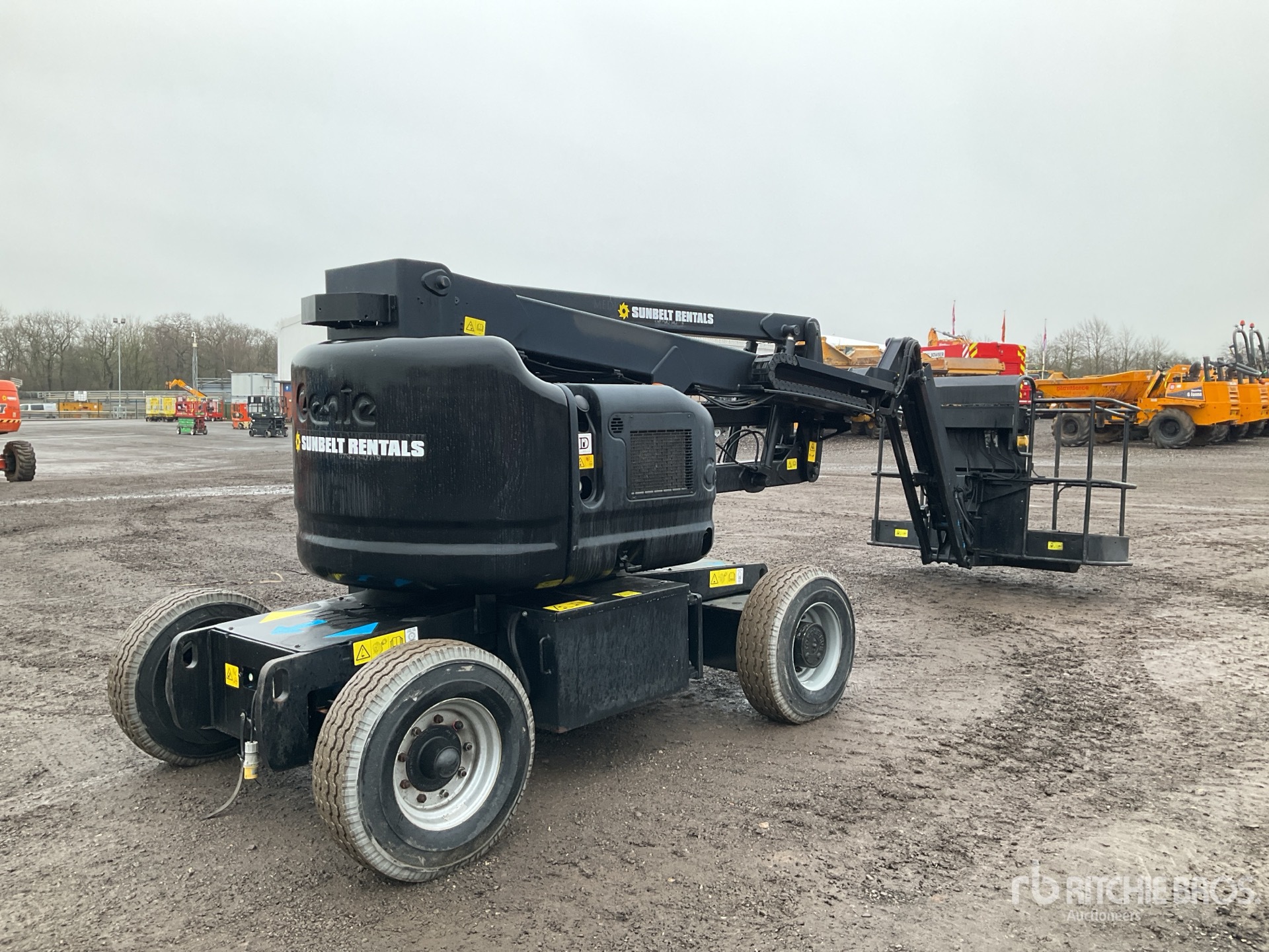 Hauteur maximale de la plateforme : 13,94 m, capacité de charge maximale : 227 kg, conforme à la norme Tier 4, homologation EPA américaine de 2008, moteur Kubota à 2 cylindres