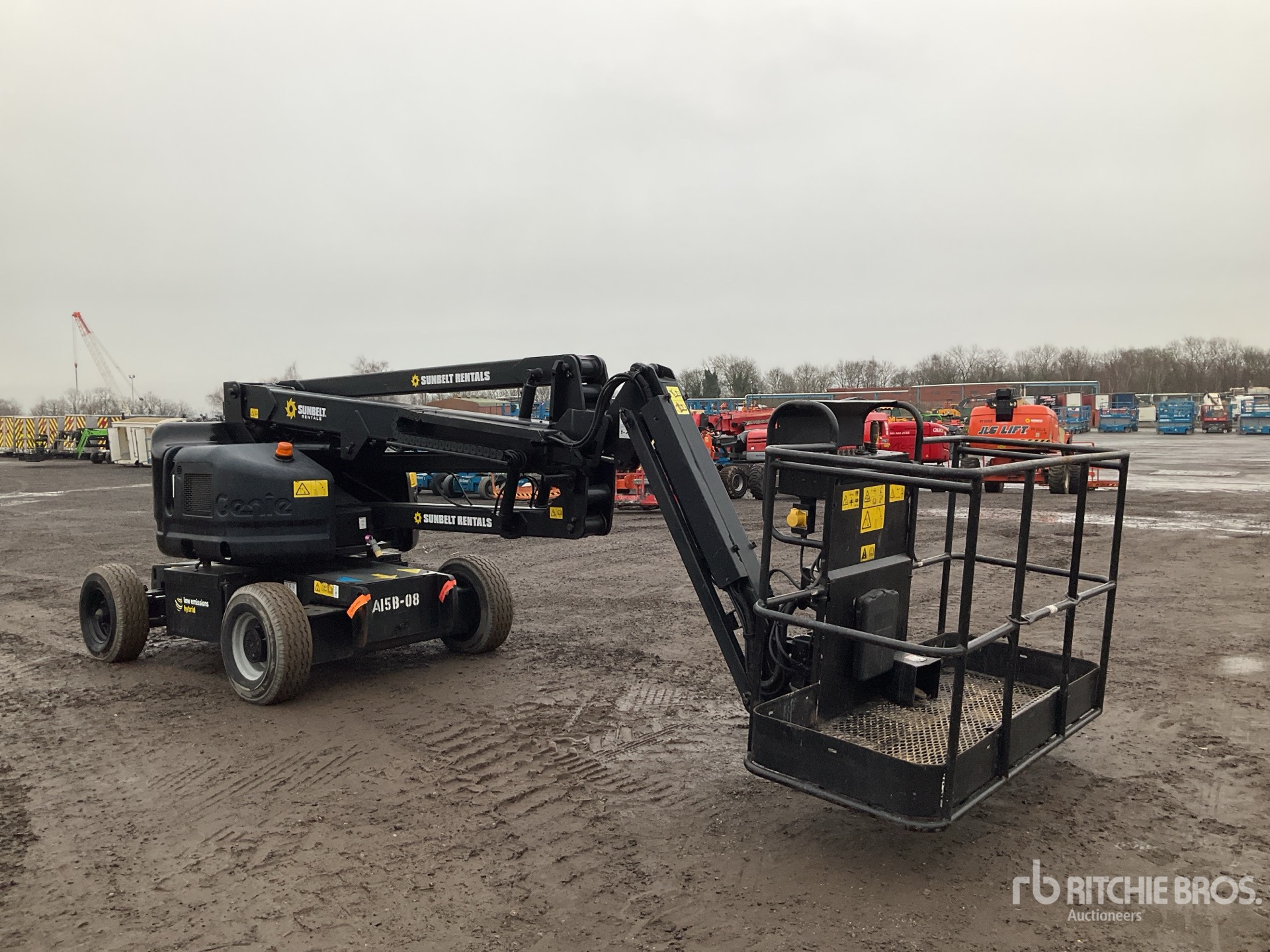 Hauteur maximale de la plateforme : 13,94 m, capacité de charge maximale : 227 kg, conforme à la norme Tier 4, homologation EPA américaine de 2008, moteur diesel Kubota à 2 cylindres