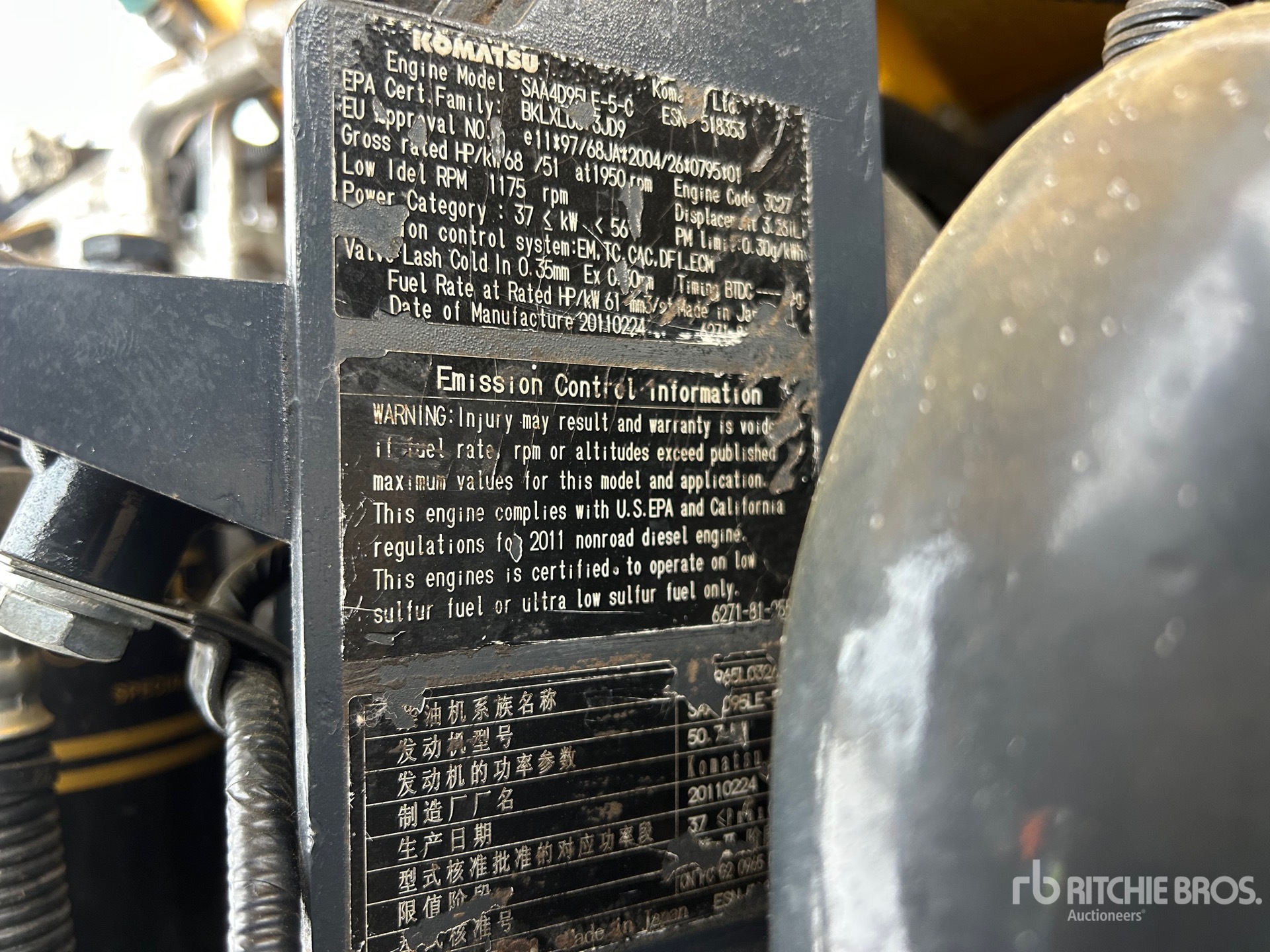 Les Informations détaillées de l’équipement sont d’une portée limitée, et les Encans Ritchie Bros. n’ont inspecté aucun autre aspect ou composant de l’équipement que ceux présentés expressément. Sauf indication précise, nous n’offrons aucune représentation ou garantie, officielle ou implicite, sur l’équipement ou ses composants, sans aucune limite de représentation ou de garantie en ce qui concerne la fonctionnalité, la conformité à toute norme de sécurité ou l’exigence de toute autorité ou agence de régulation en vigueur, l’adaptation à un quelconque usage, ou la valeur commerciale. Il vous est fortement conseillé d’effectuer votre propre inspection détaillée de l’équipement avant d’enchérir.