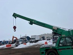 Indicateur de moment de charge Greer MG586, moteur diesel 4 cylindres, flèche de 3,35 m (minimum) à 9,14 m (maximum), fléchette pivotante de 3,05 m, poulie de renvoi McKissick à 1 réa d'une capacité de 10 tonnes (55 kg).