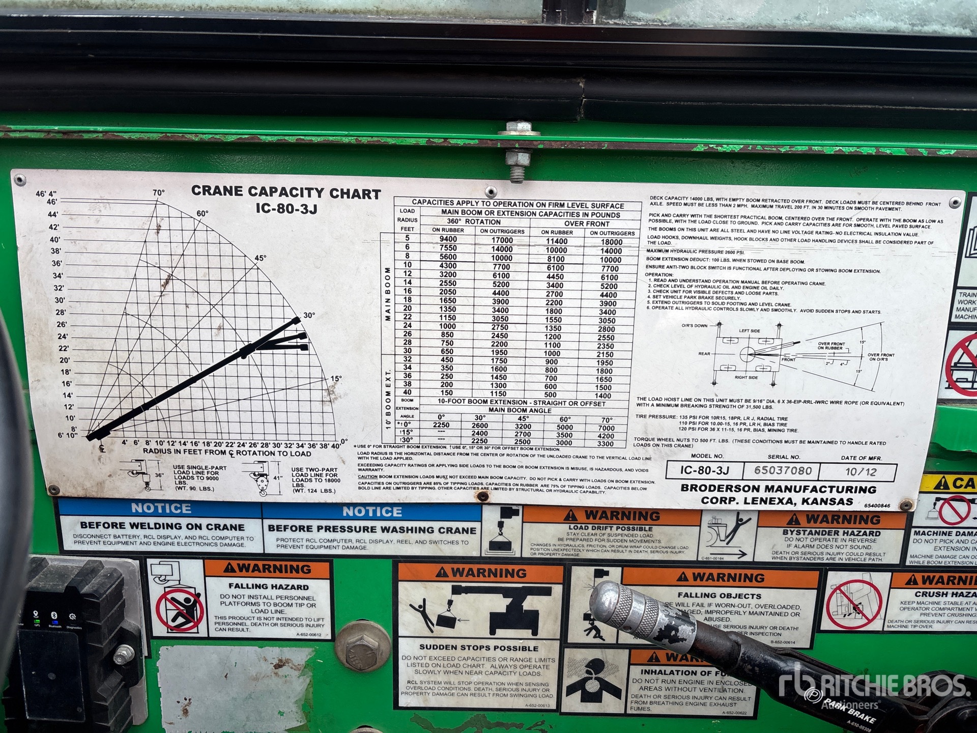 Les Informations détaillées de l’équipement sont d’une portée limitée, et les Encans Ritchie Bros. n’ont inspecté aucun autre aspect ou composant de l’équipement que ceux présentés expressément. Sauf indication précise, nous n’offrons aucune représentation ou garantie, officielle ou implicite, sur l’équipement ou ses composants, sans aucune limite de représentation ou de garantie en ce qui concerne la fonctionnalité, la conformité à toute norme de sécurité ou l’exigence de toute autorité ou agence de régulation en vigueur, l’adaptation à un quelconque usage, ou la valeur commerciale. Il vous est fortement conseillé d’effectuer votre propre inspection détaillée de l’équipement avant d’enchérir.