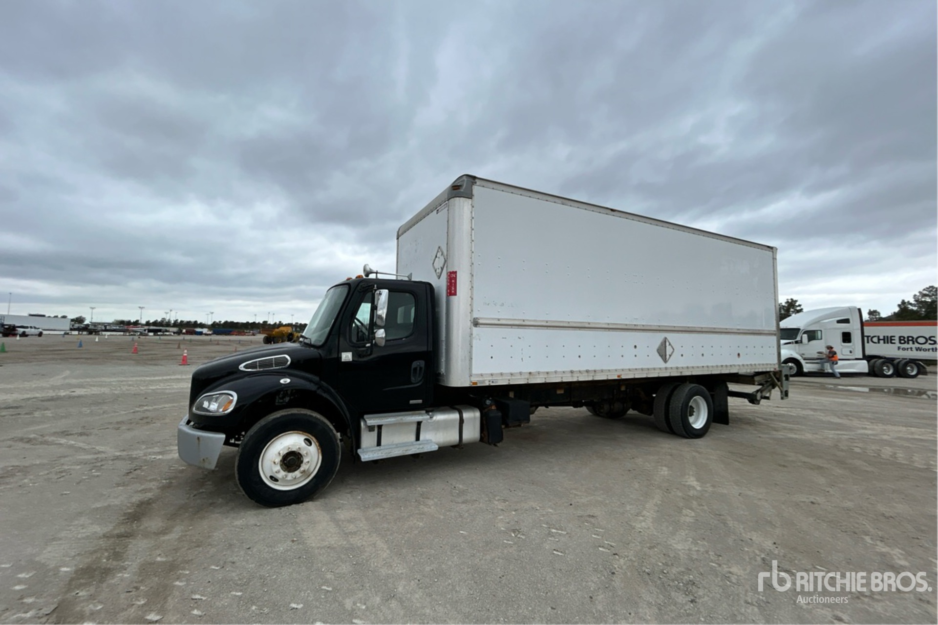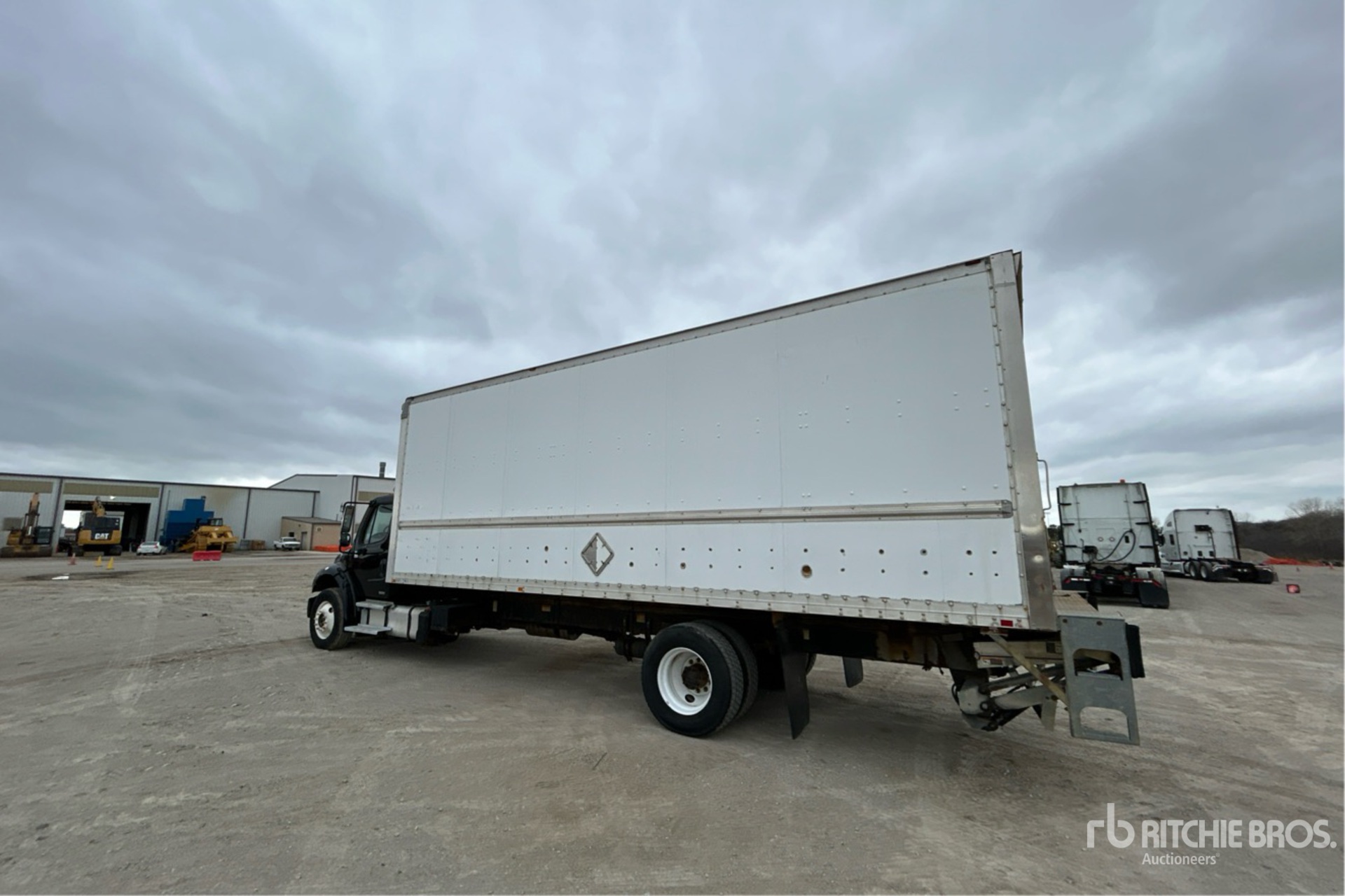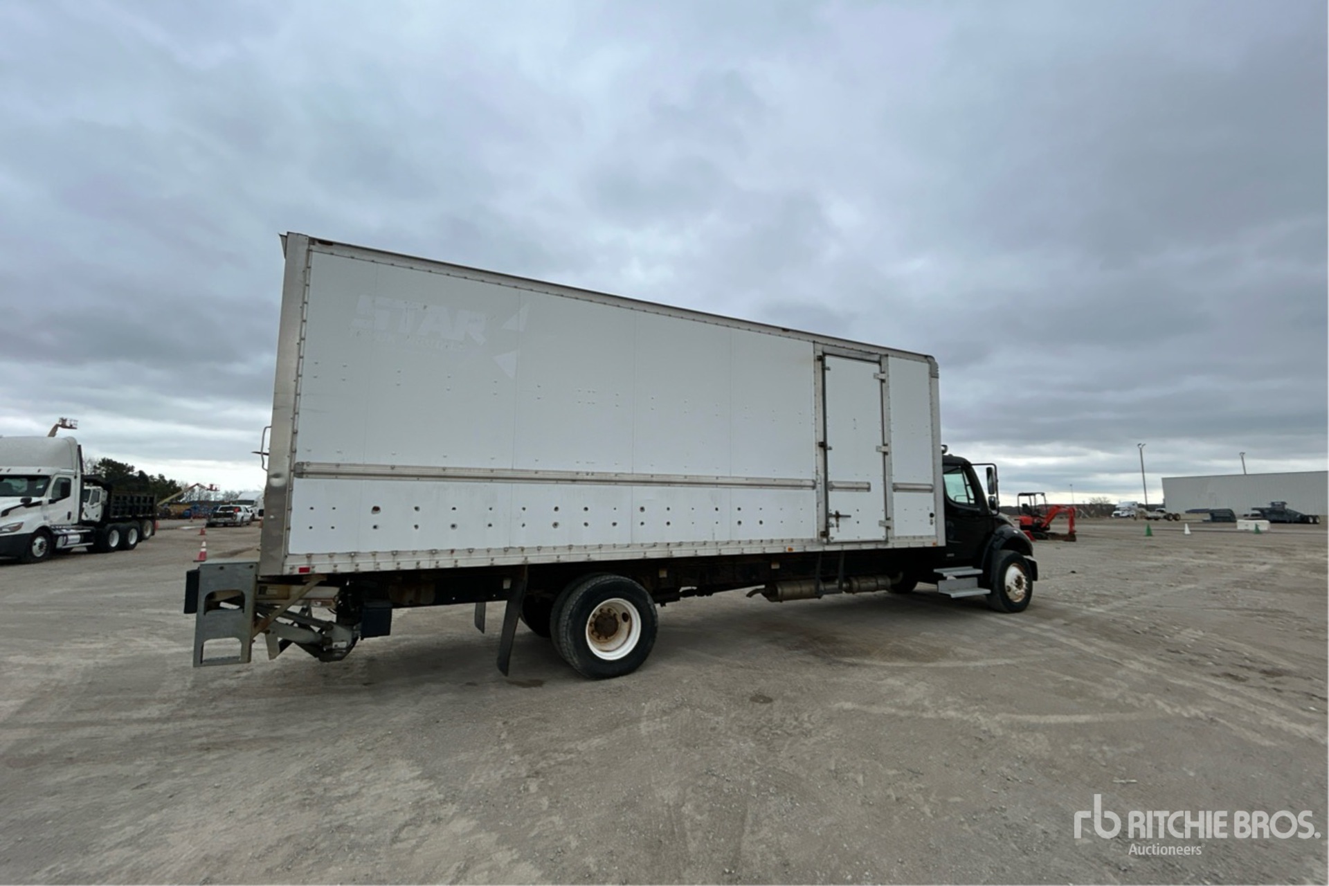 Moteur diesel Cummins ISB6.7 240, 6 cylindres, 6,7 L, 240 ch, homologué EPA 2011, nécessite un additif pour réservoirs de diesel, 9 308 heures de fonctionnement, frein moteur, transmission automatique Allison 2500, essieu avant de 5 443 kg (12 000 lb), essieux arrière de 9 525 kg (21 000 lb), rapport de pont de 6,14:1, PTAC de 14 996 kg (33 000 lb), cabine à suspension pneumatique, pneus 295/75R22.5, suspension à ressorts, empattement de 6,86 m (270 po), benne Morgan de 7,92 m (26 pi) de long, 2,54 m (100 po) de large et 2,57 m (101 po) de haut, porte latérale, rampe d'accès, hayon élévateur
