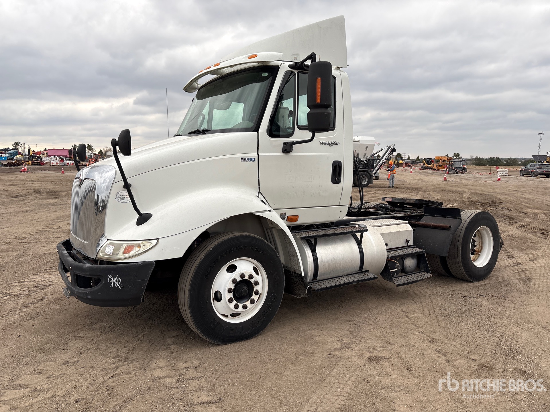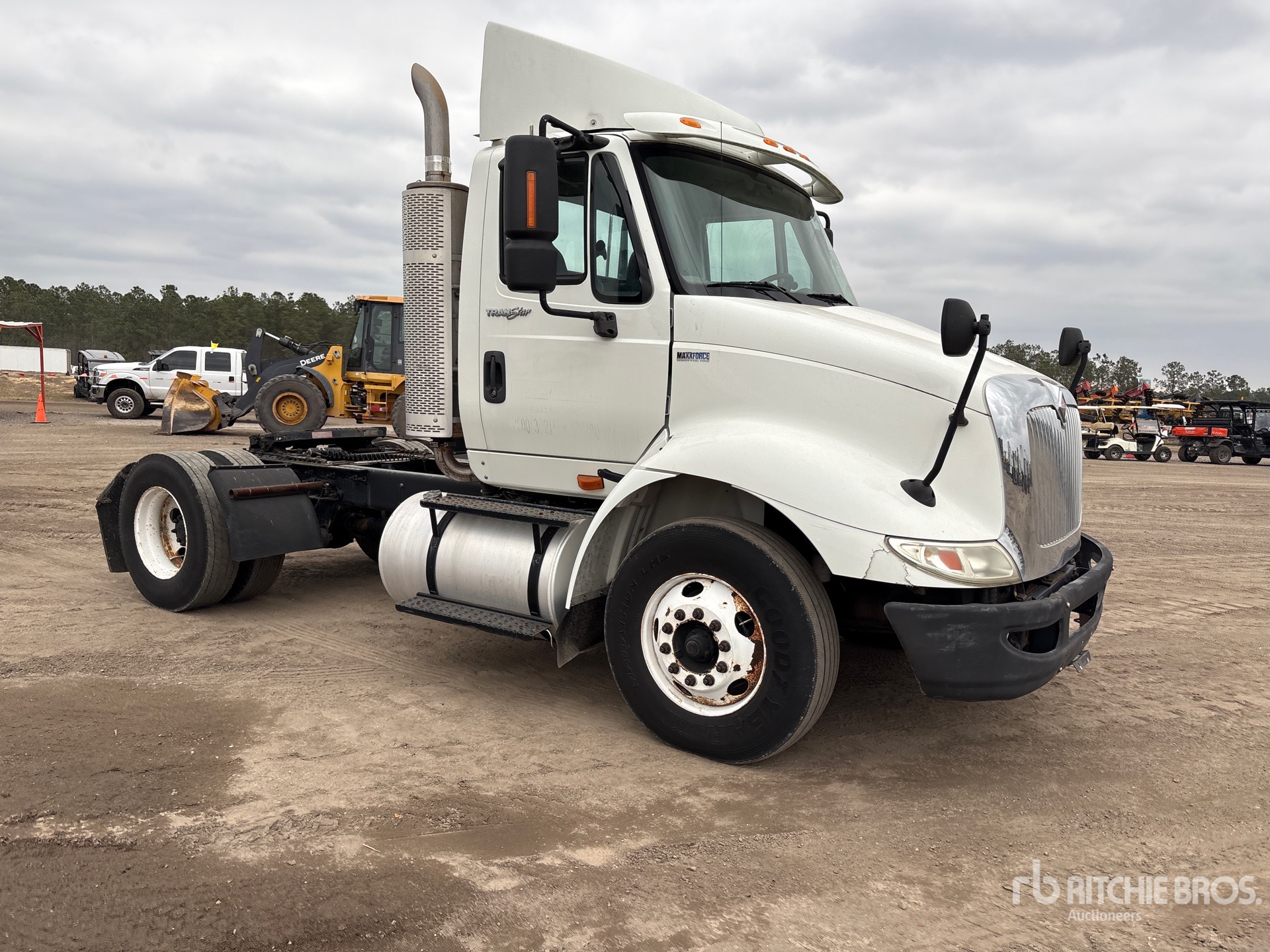 Moteur international, transmission automatisée, essieu avant de 12 000 lb, essieux arrière de 20 000 lb, PTAC de 32 000 lb, empattement de 157 po, suspension pneumatique, pneus 11R22.5, sellette d'attelage coulissante pneumatique, deux réservoirs de carburant