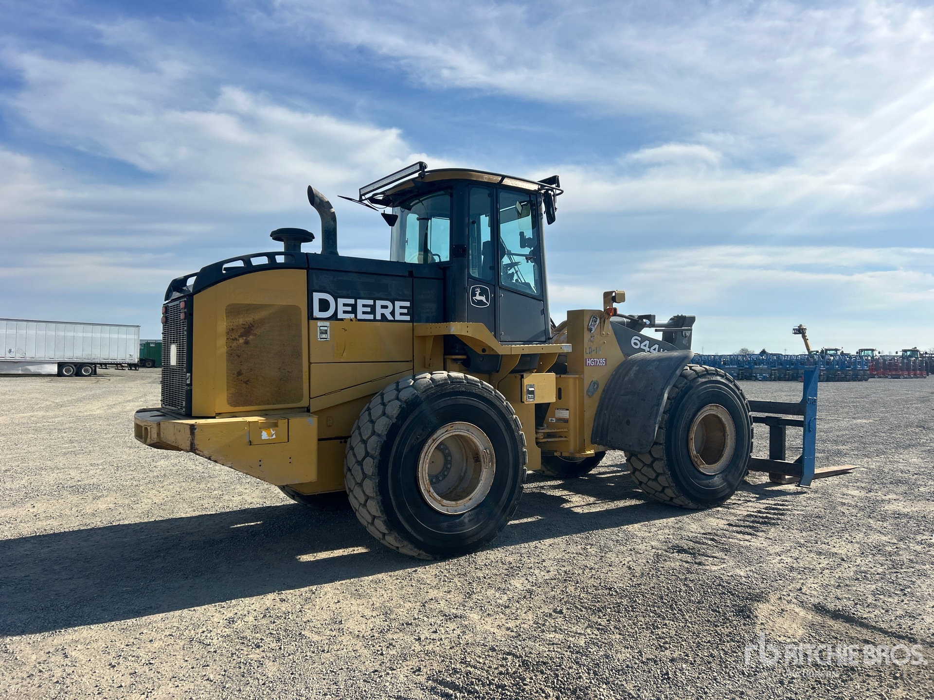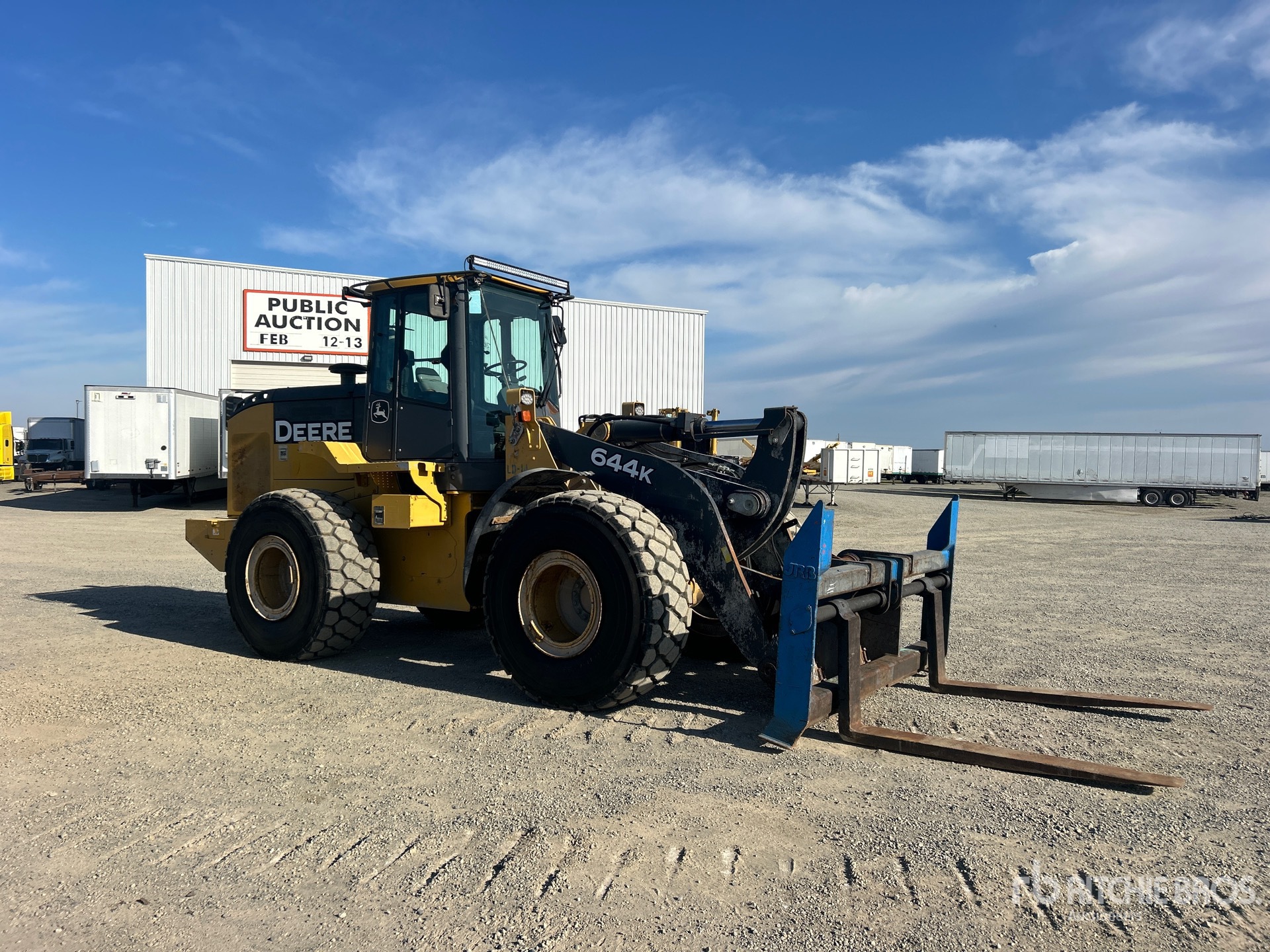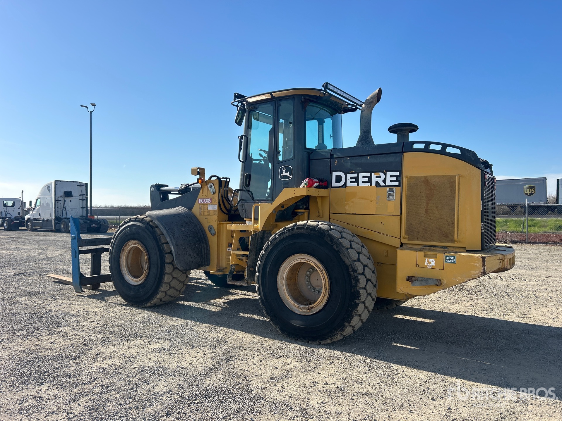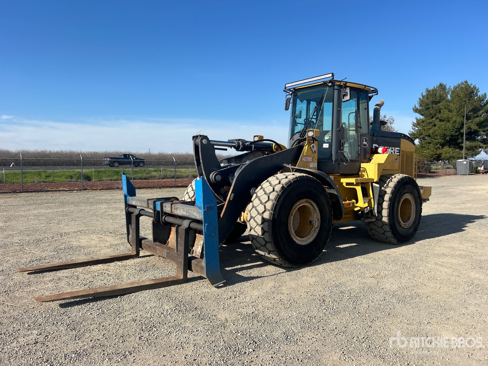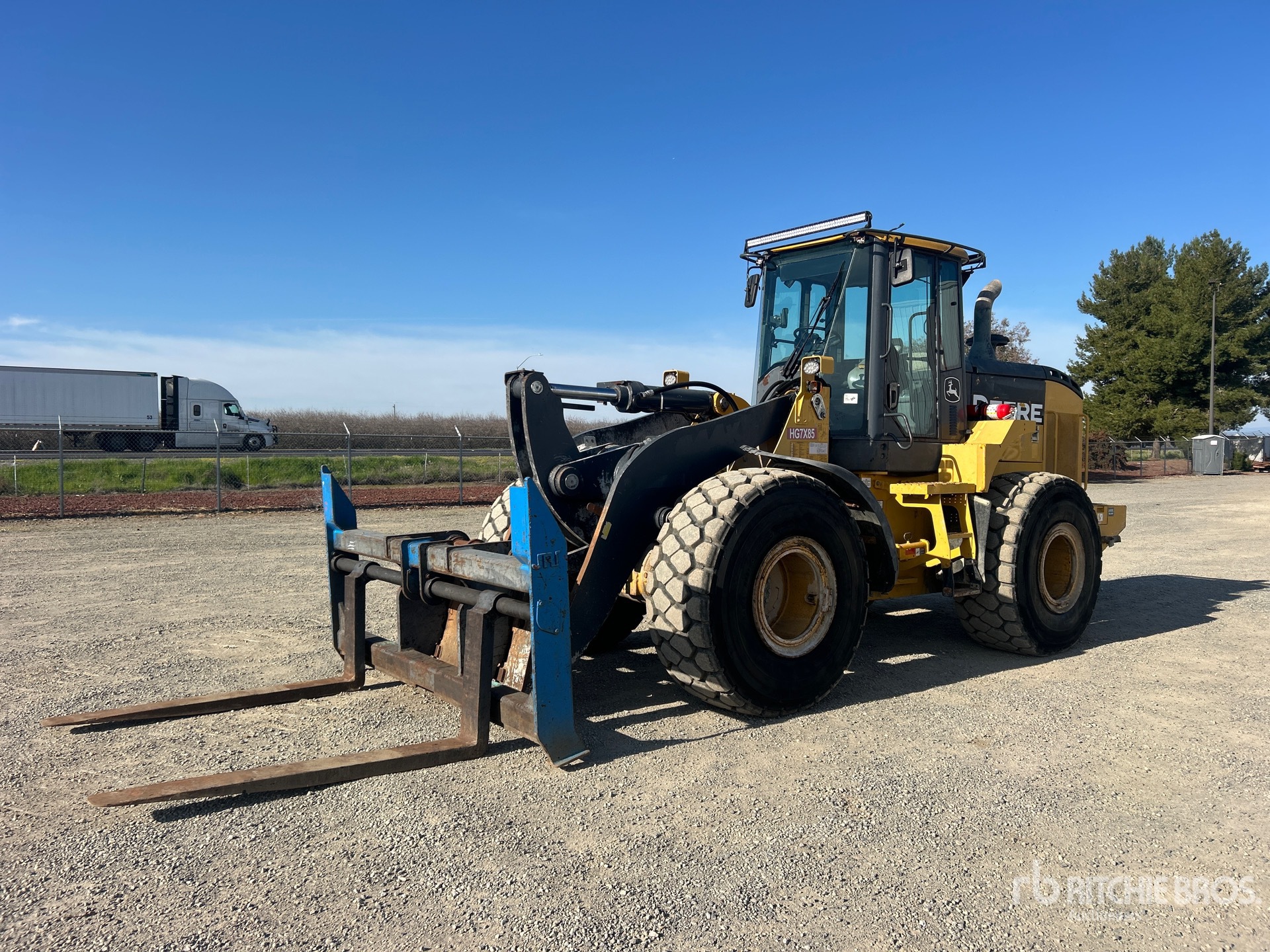 Situé sur la voie 3, emplacement 6, cabine fermée, coupleur hydraulique, fourches, pneus 23.5R25, fourches de 69,5 pouces