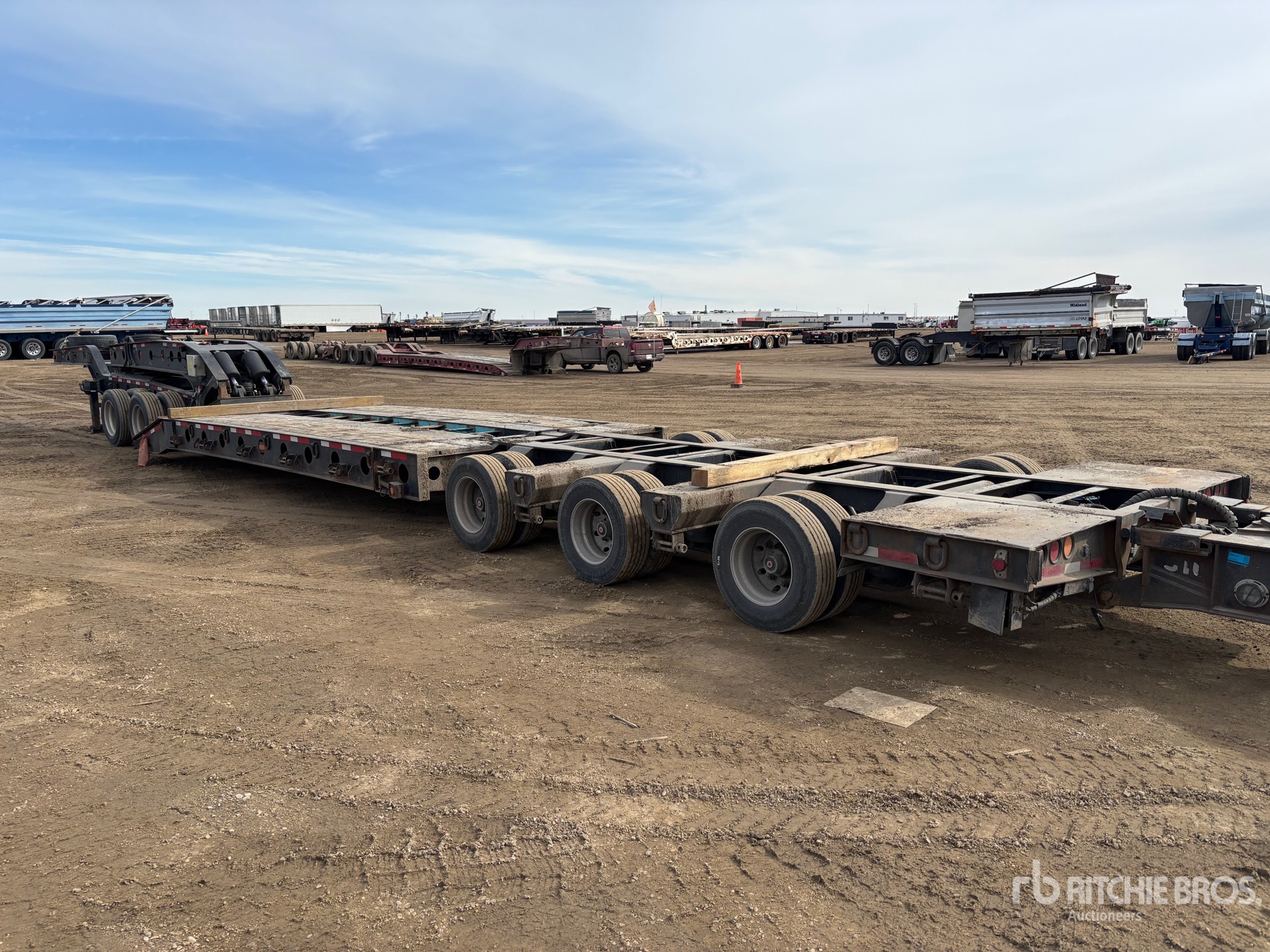 Col de cygne amovible hydraulique, rallonge de col, plateau principal de 7 m x 3 m, suspension pneumatique, compatible Jeep, essieu d'appoint à fixation par goupille, pré-équipé pour essieu d'appoint, système hydraulique autonome à essence, rallonge de col de cygne hydraulique, roues en aluminium, MVI janvier 2027, Complete-Dispersal-Spruce-Hollow-Heavy-Haul-Ltd