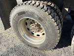 Moteur diesel Paccar 6 cylindres 12,9 L 485 ch, frein moteur, transmission manuelle Eaton Fuller, essieu avant 5443 kg, essieu arrière 1814 kg, PTAC 23587 kg, jantes en aluminium, pneus 11R24.5, essieu porteur à suspension pneumatique, suspension pneumatique, empattement 691 cm, prise de force, caisse en acier 5,5 m de long x 1,17 m de haut, bâche à enroulement électrique, goulotte de hayon