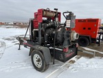 Pompe à eau centrifuge, entrée 15,2 cm, sortie 15,2 cm, homologuée EPA (États-Unis) 2011, moteur diesel John Deere 4024HF285C, 4 cylindres, 60 kW, 2,4 L, remorque porte-engins à boule d'attelage.