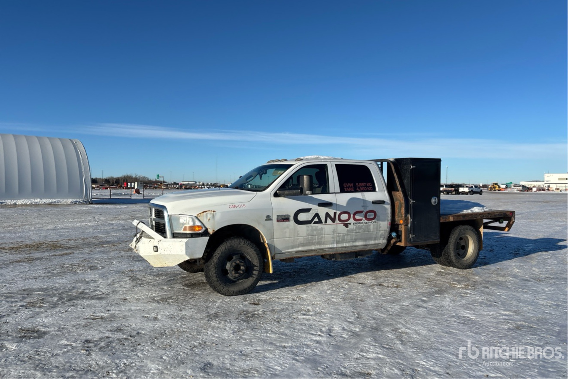 Moteur diesel V8 6,7 L, nécessite du liquide d'échappement diesel, 8 641 heures moteur, frein moteur, transmission automatique, essieu avant de 2 495 kg, essieux arrière de 4 235 kg, PTAC de 5 900 kg, pneus 255/80R17, suspension à ressorts, empattement de 4,42 m, benne de 2,77 m x 2,34 m