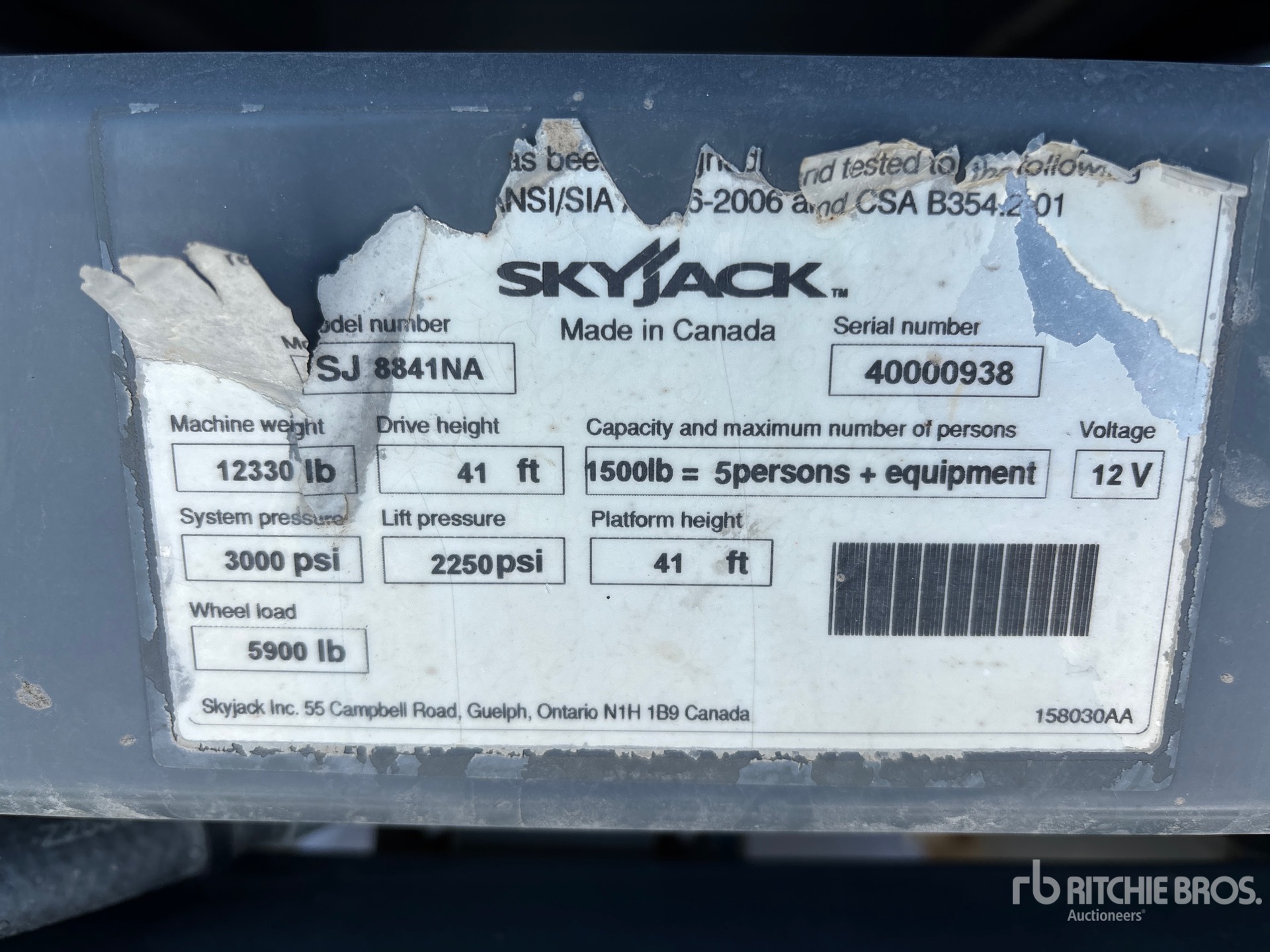 Hauteur maximale de la plateforme : 12,5 m (41 pi), capacité de charge maximale : 680 kg (1 500 lb), rallonge de plateforme, alimentation électrique de la plateforme, stabilisateurs, boîtier de commande supérieur, homologation EPA américaine 2012, moteur bicarburant 4 cylindres 1,6 L PSI