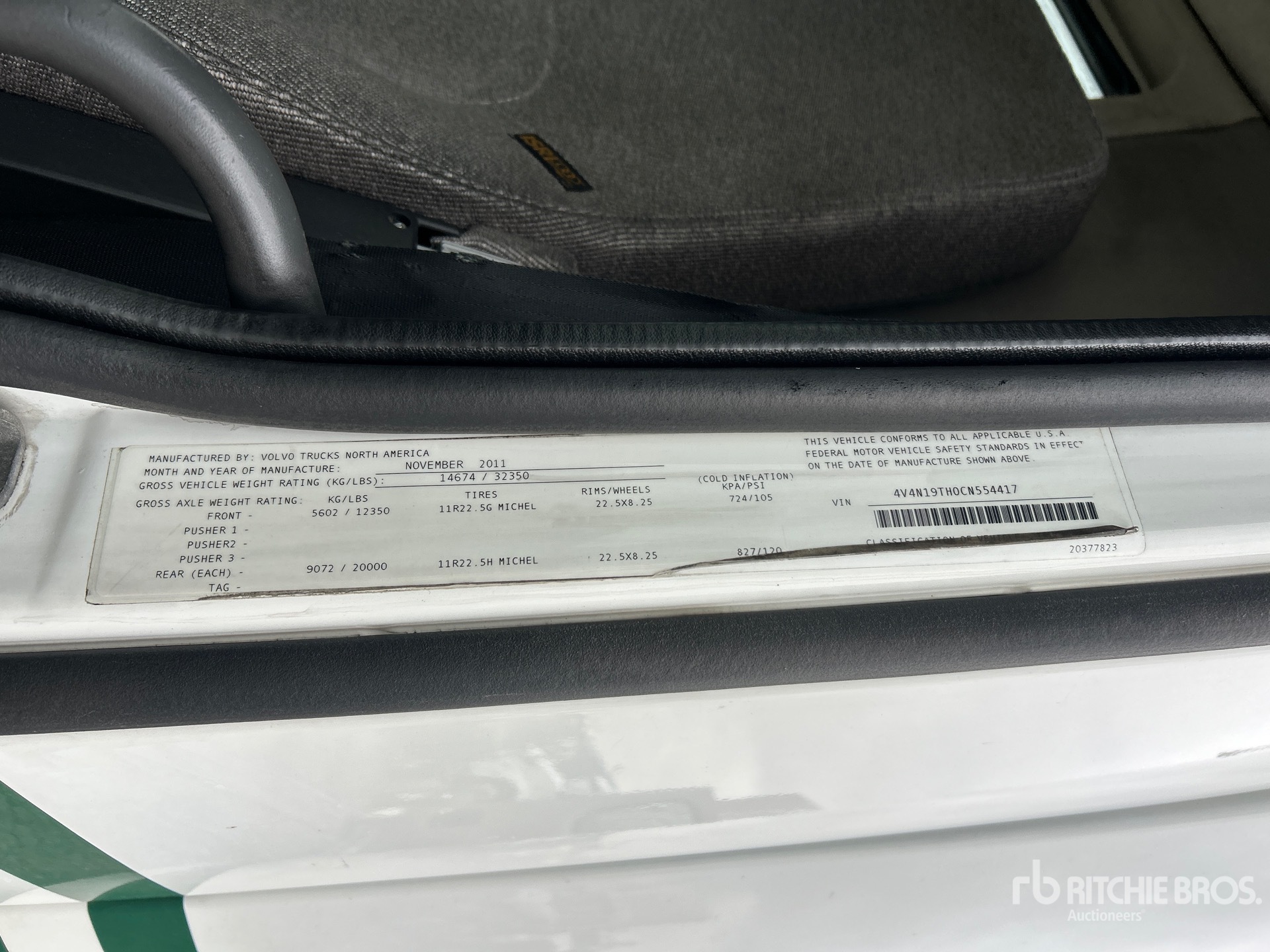 Situé sur la voie 32, emplacement 27, moteur Cummins de 425 ch, étiquette EPA américaine 2011, transmission manuelle Eaton Fuller FAO-16810C à 10 vitesses, essieu avant de 12 350 lb, essieux arrière de 20 000 lb, PTAC de 32 350 lb, empattement de 158 po, suspension pneumatique, pneus 11R22.5, sellette d'attelage coulissante pneumatique, deux réservoirs de carburant