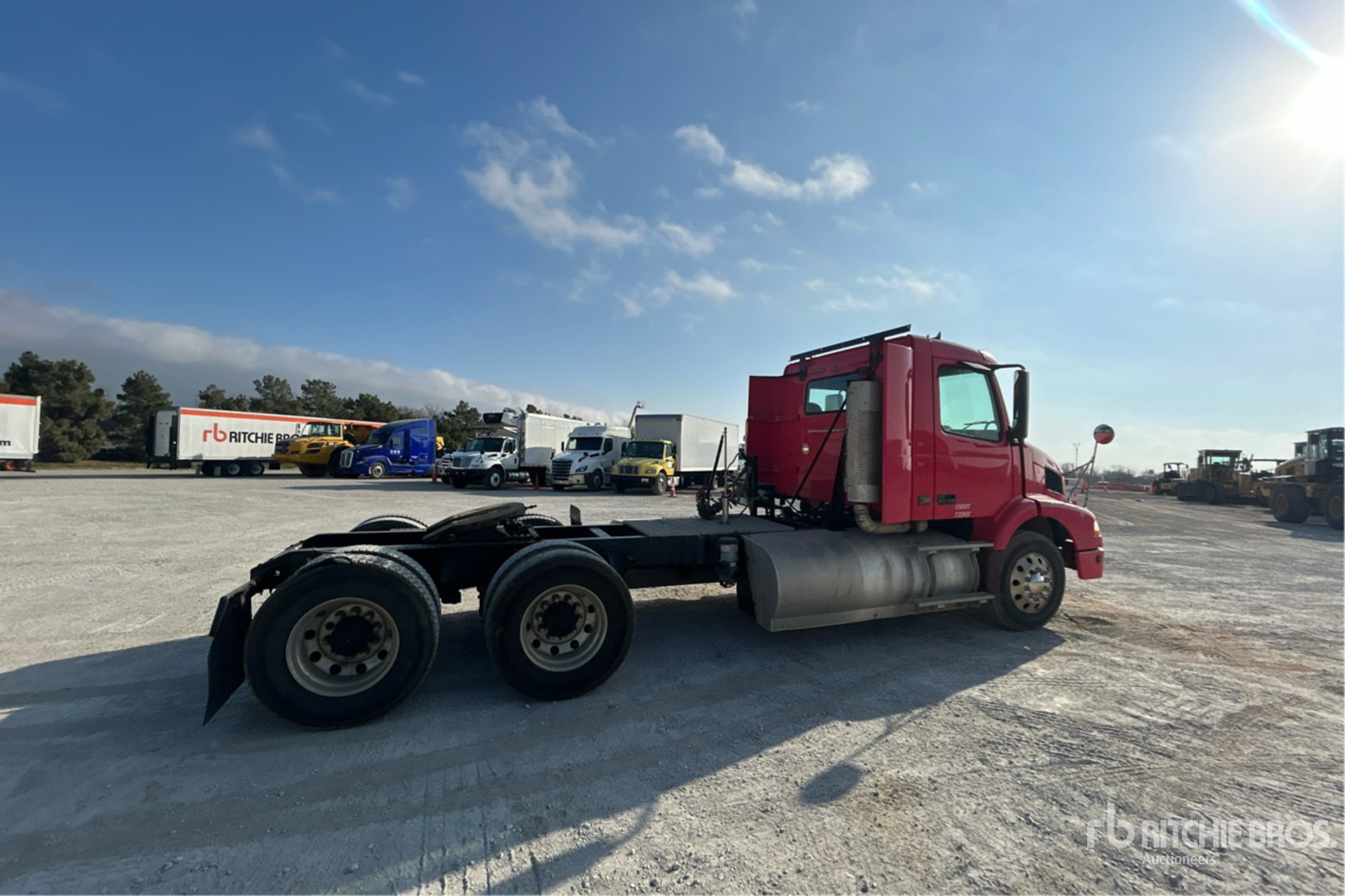 Moteur Cummins ISL 320 ch, 7 351 heures de fonctionnement, transmission automatique Allison à 6 rapports, essieu avant de 5 443 kg, essieux arrière de 17 237 kg, PTAC de 22 680 kg, empattement de 538 mm, suspension pneumatique, jantes en aluminium, pneus avant 295/75R22.5, pneus arrière 11R22.5, sellette attelage coulissant pneumatique