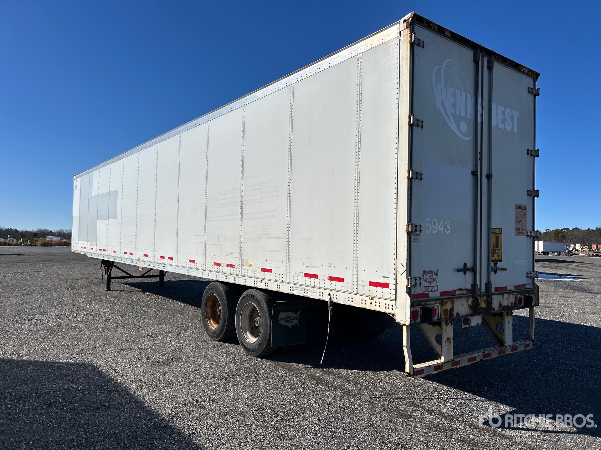 Suspension pneumatique coulissante, plancher de bois franc, porte battante, pneus 295/75R22.5, PNBV de 68 000 lb
