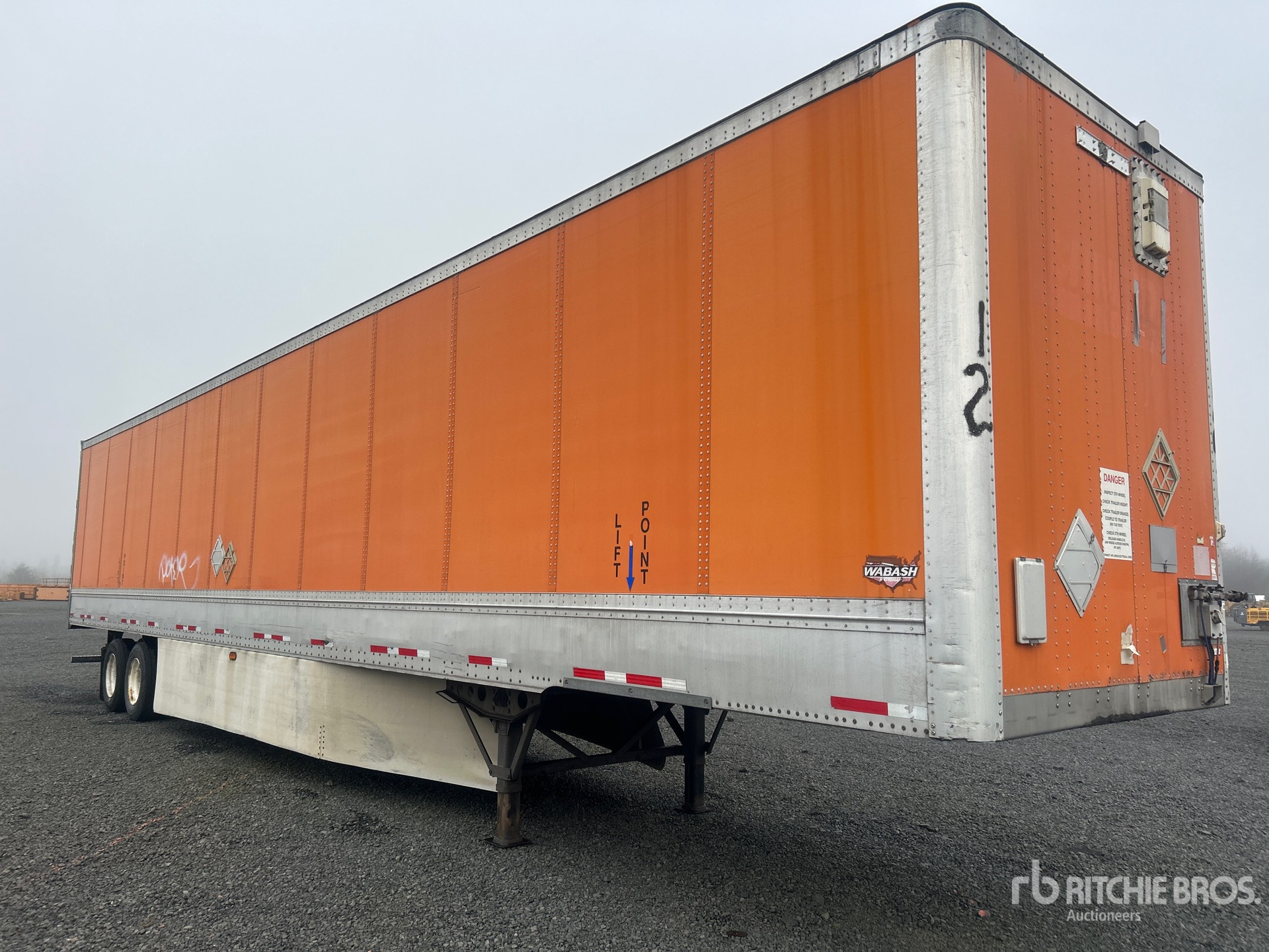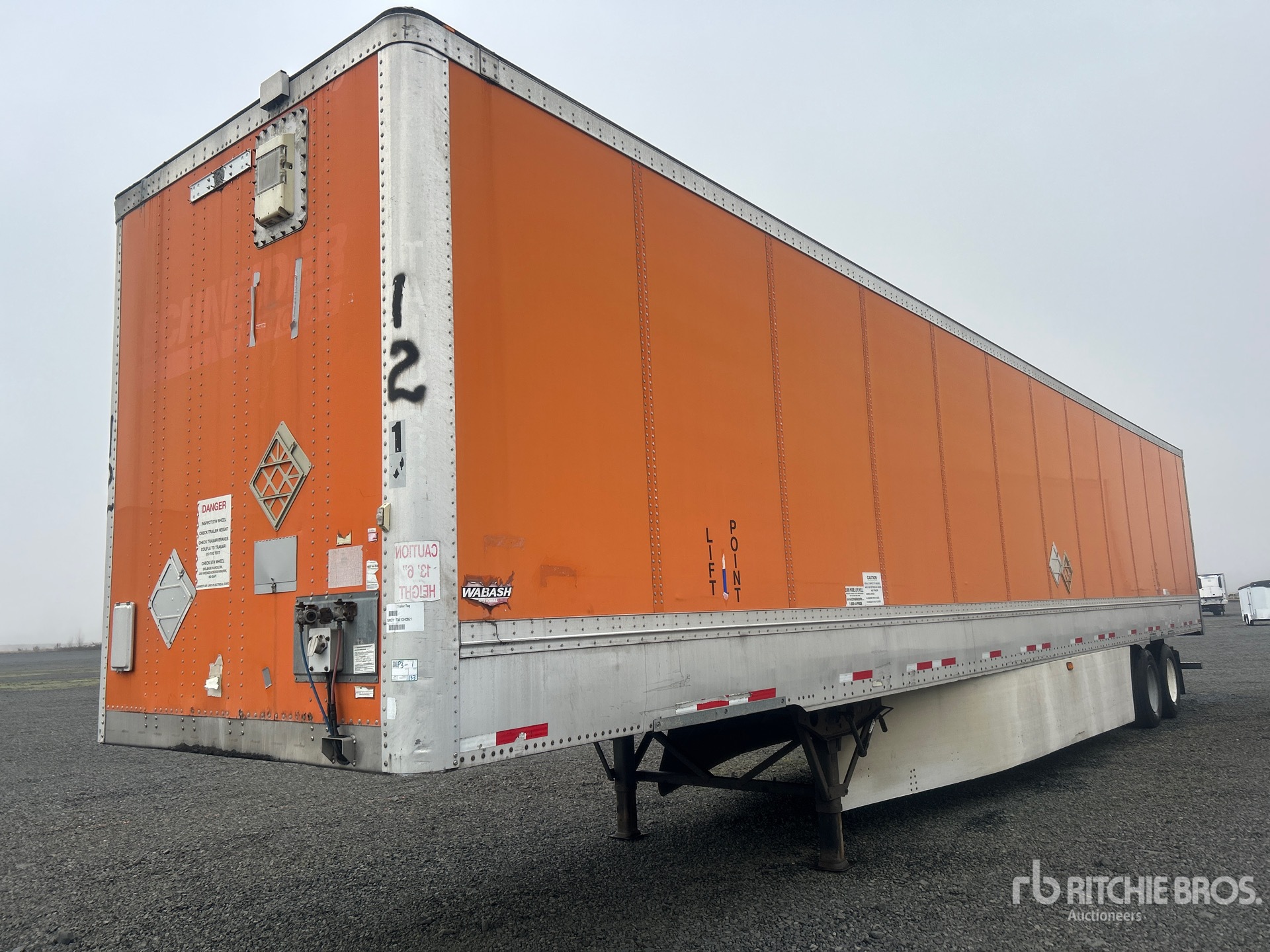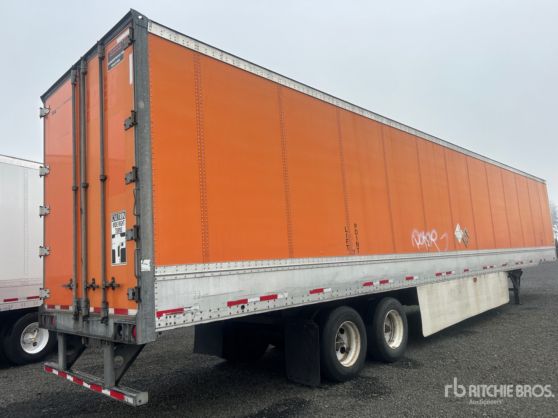 Situé sur la voie 36, emplacement 17, ce véhicule est équipé d'une suspension à ressorts coulissante, de jupes latérales, d'un plancher de bois franc, d'une porte battante, de pneus 295/75R22.5 et d'un PTAC de 68 000 lb.