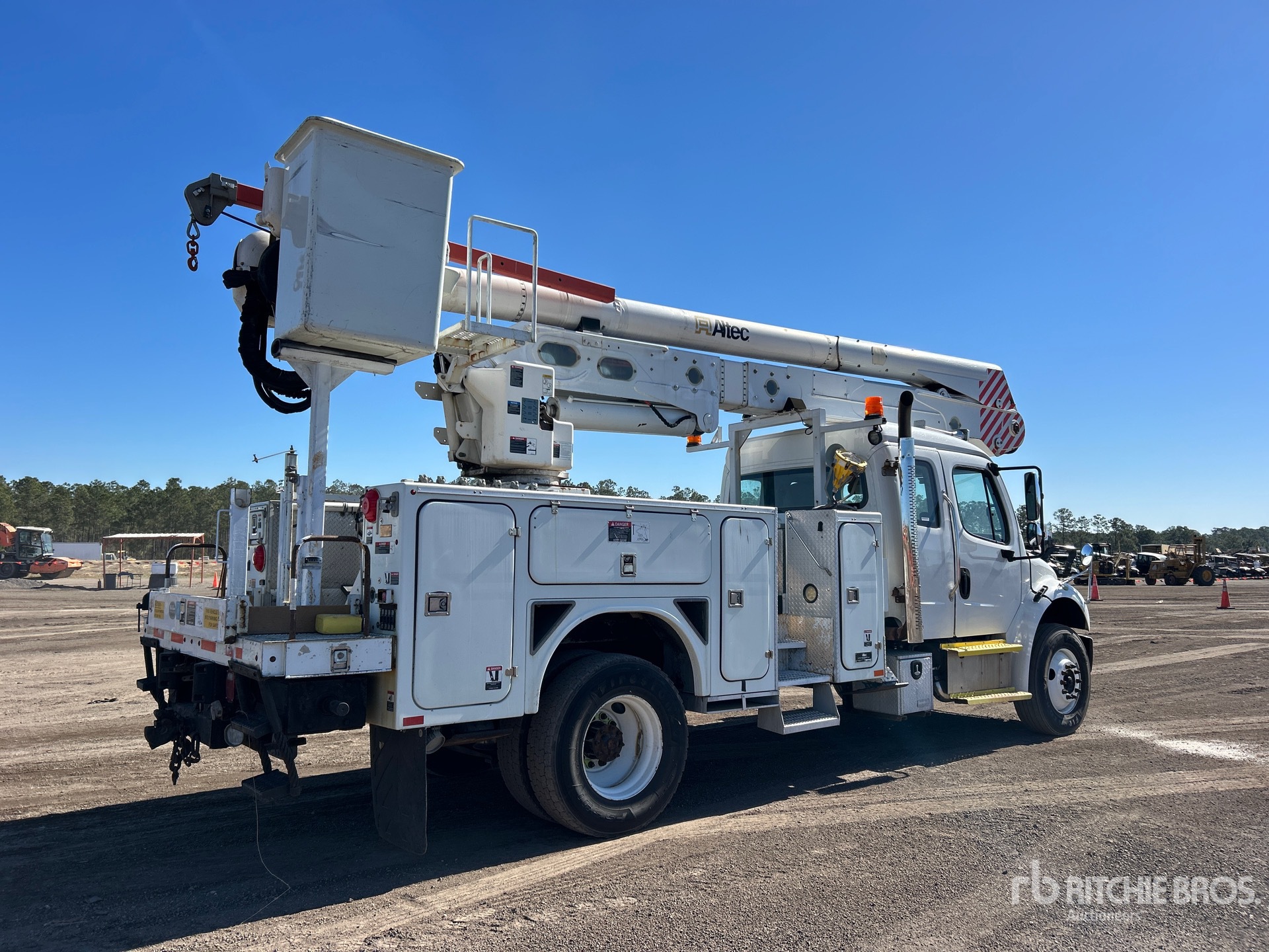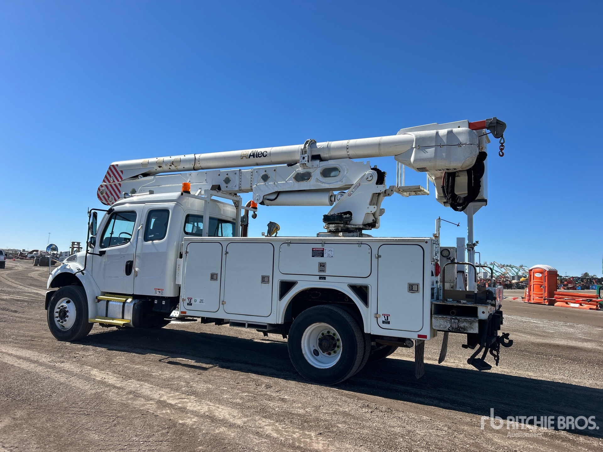 Moteur diesel Cummins ISB 6 cylindres 6,7 L 300 ch, homologué EPA 2014, nécessite un liquide d'échappement diesel, 16 576 heures moteur, frein moteur, transmission automatique Allison 3000, blocage de différentiel, essieu avant 5 443 kg, essieu arrière 9 525 kg, PTAC 14 997 kg, cabine à suspension pneumatique, pneus 11R22.5, suspension pneumatique Airliner, empattement 5,18 m, prise de force (PDF), capacité de 227 kg, flèche articulée isolée monoplace montée à l'arrière, insert en fibre de verre sur la partie inférieure de la flèche, benne utilitaire, treuil monté en bout de flèche, fléchette de manutention, stabilisateurs en A, stabilisateurs arrière, plateau de 4,57 m x 2,49 m, châssis mixte aluminium/acier, attelage à anneau