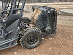 Toit ouvrant, 2 places, pare-brise, treuil, pare-buffle, benne basculante manuelle, homologué EPA 2013, conforme aux normes CARB, moteur à essence 2 cylindres 976 cm³.