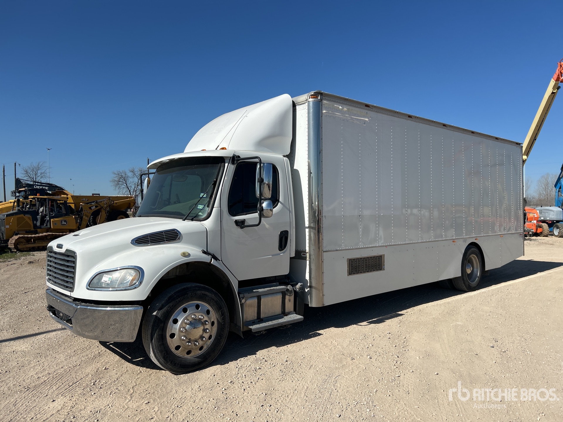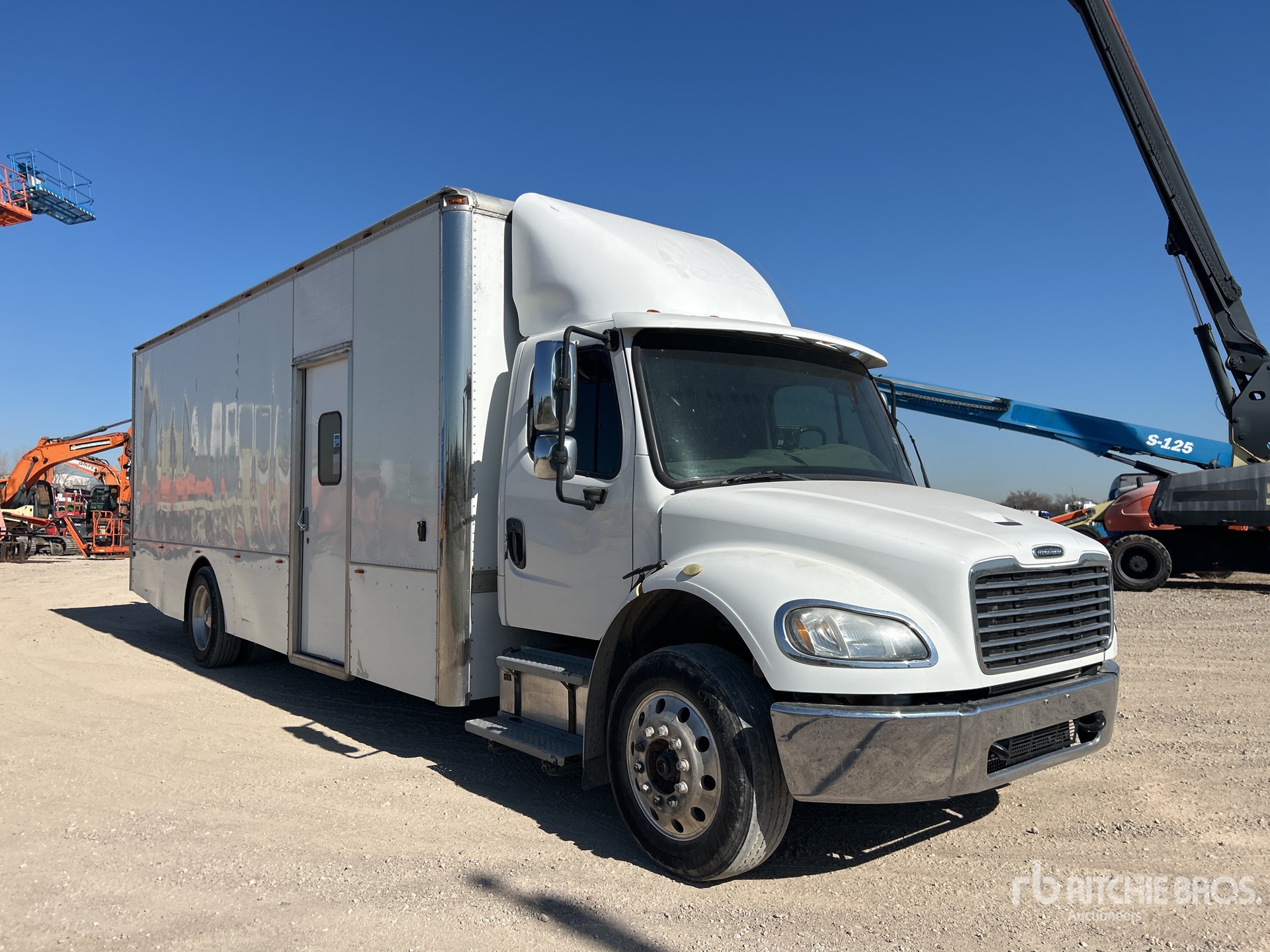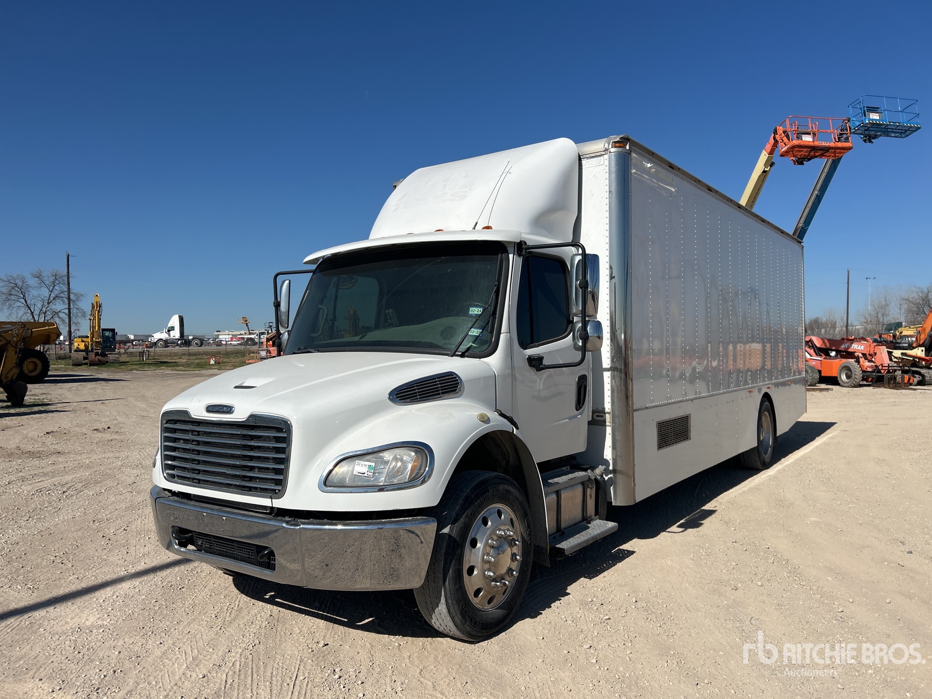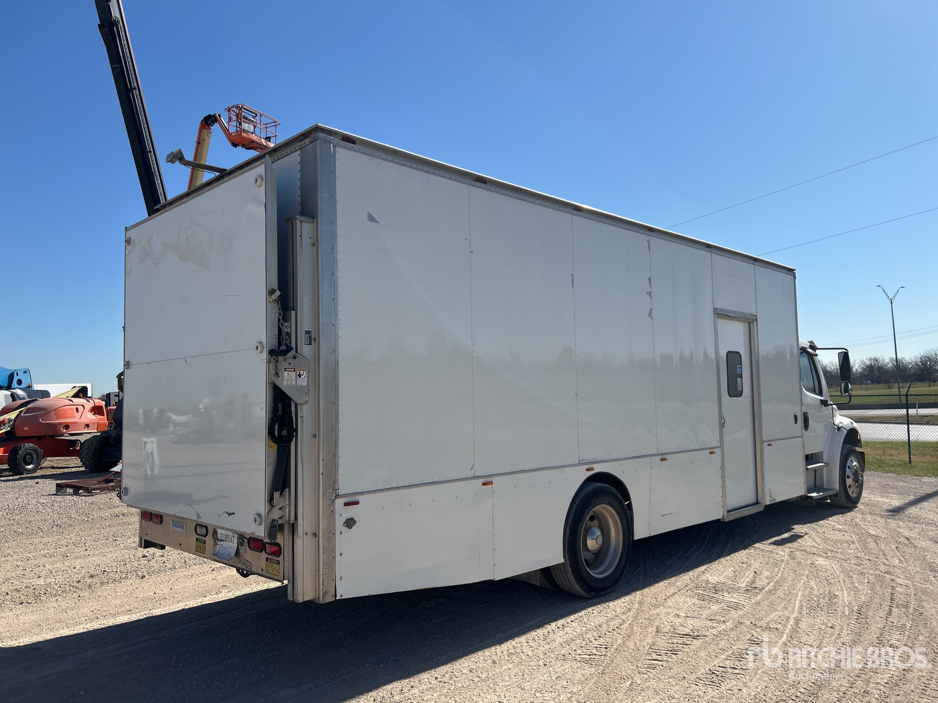 Situé sur la voie 13, emplacement 1, moteur diesel Cummins ISB 6 cylindres 6,7 L 240 ch, nécessite du liquide d'échappement diesel, transmission automatique Allison 2500, essieu avant de 4 536 kg, essieu arrière de 8165 kg, rapport de pont de 5,57:1, PTAC de 11 793 kg, jantes extérieures en aluminium, pneus 275/70R22.5, empattement de 640 mm, carrosserie Alfred de 7,3 m x 2,6 m x 2,1 m, porte côté trottoir, hayon élévateur