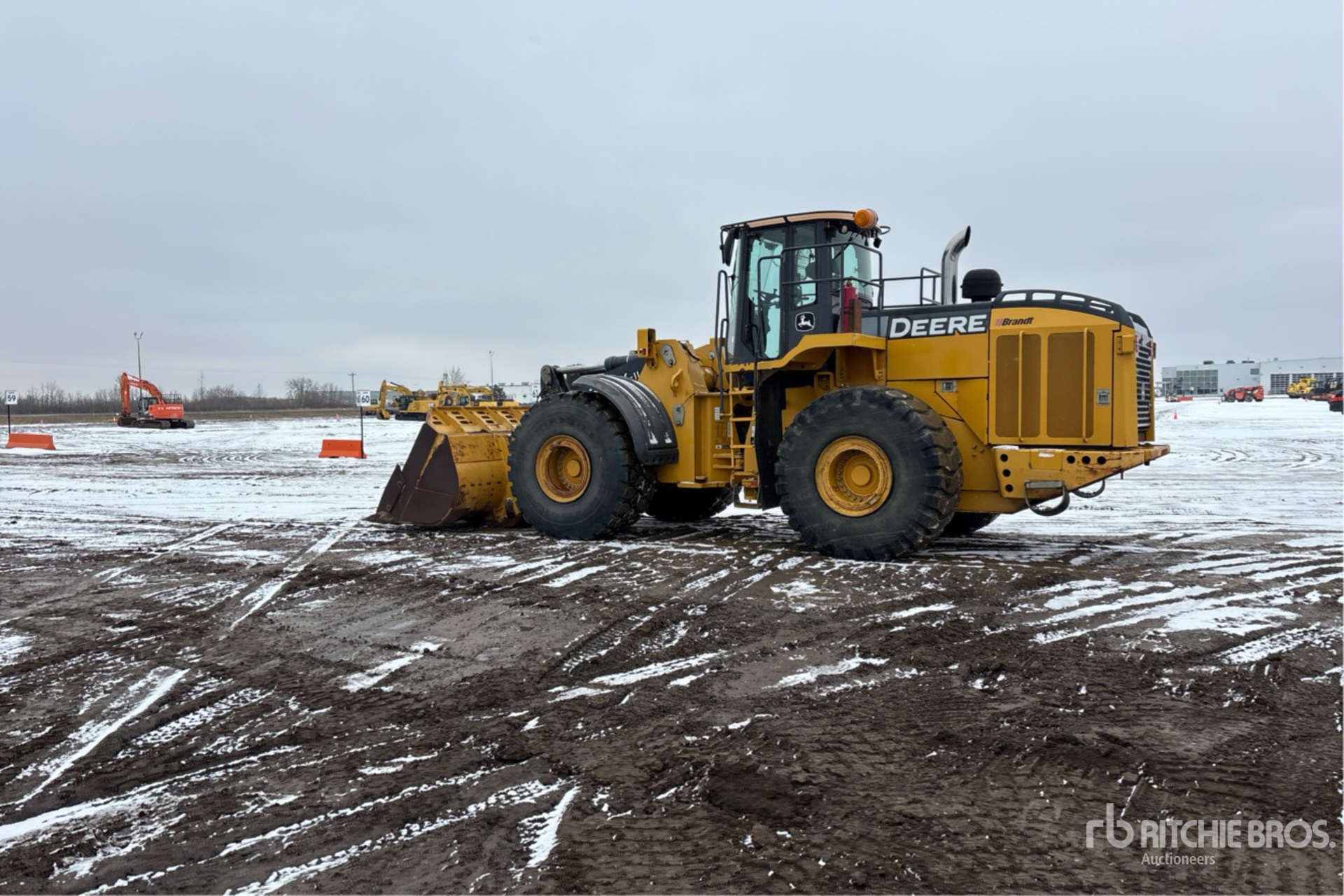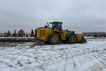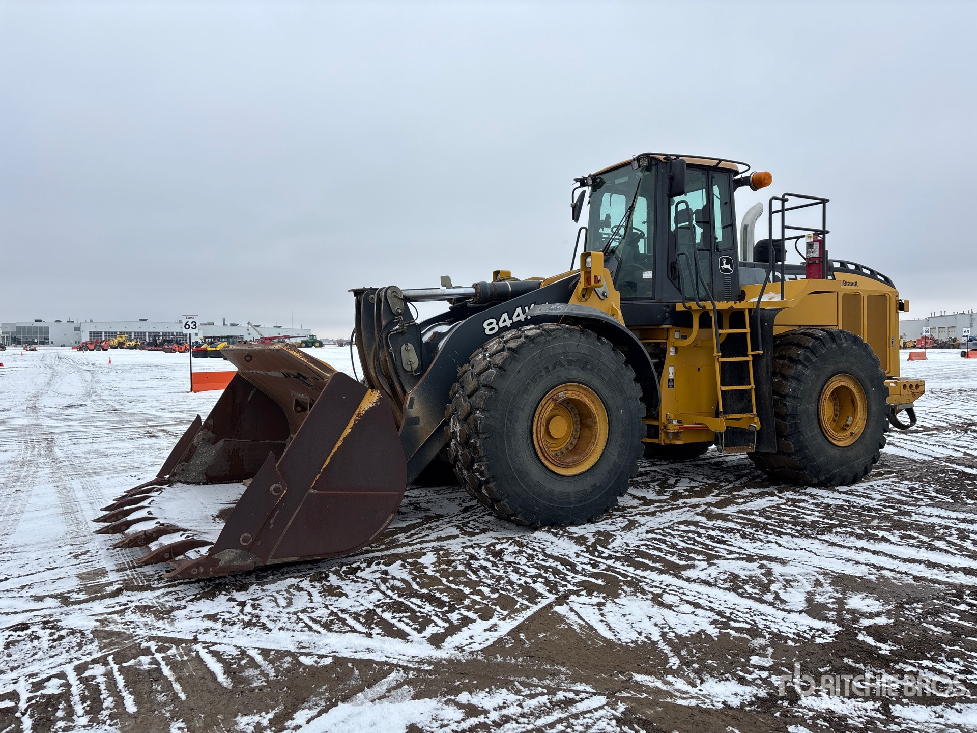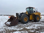 Cabine fermée, climatisation, siège à suspension pneumatique, contrôle de la conduite, boîte de vitesses automatique, antipatinage, réchauffeur de liquide de refroidissement moteur, attelage manuel, godet à nez de bêche de 134 pouces, graissage automatique, pneus 29,5R25