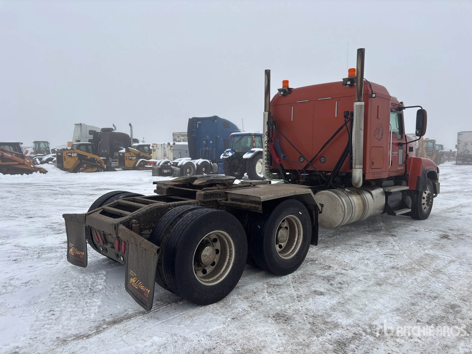 Moteur Mack MP8 de 505 ch, 13 491 heures moteur, essieu avant de 6 624 kg, essieux arrière de 20 864 kg, PTAC de 27 362 kg, frein moteur, cabine couchette à toit surélevé de 91 cm, empattement de 6,10 m, suspension pneumatique, jantes extérieures en aluminium, pneus 11R22.5, sellette d'attelage coulissante pneumatique, double réservoir de carburant