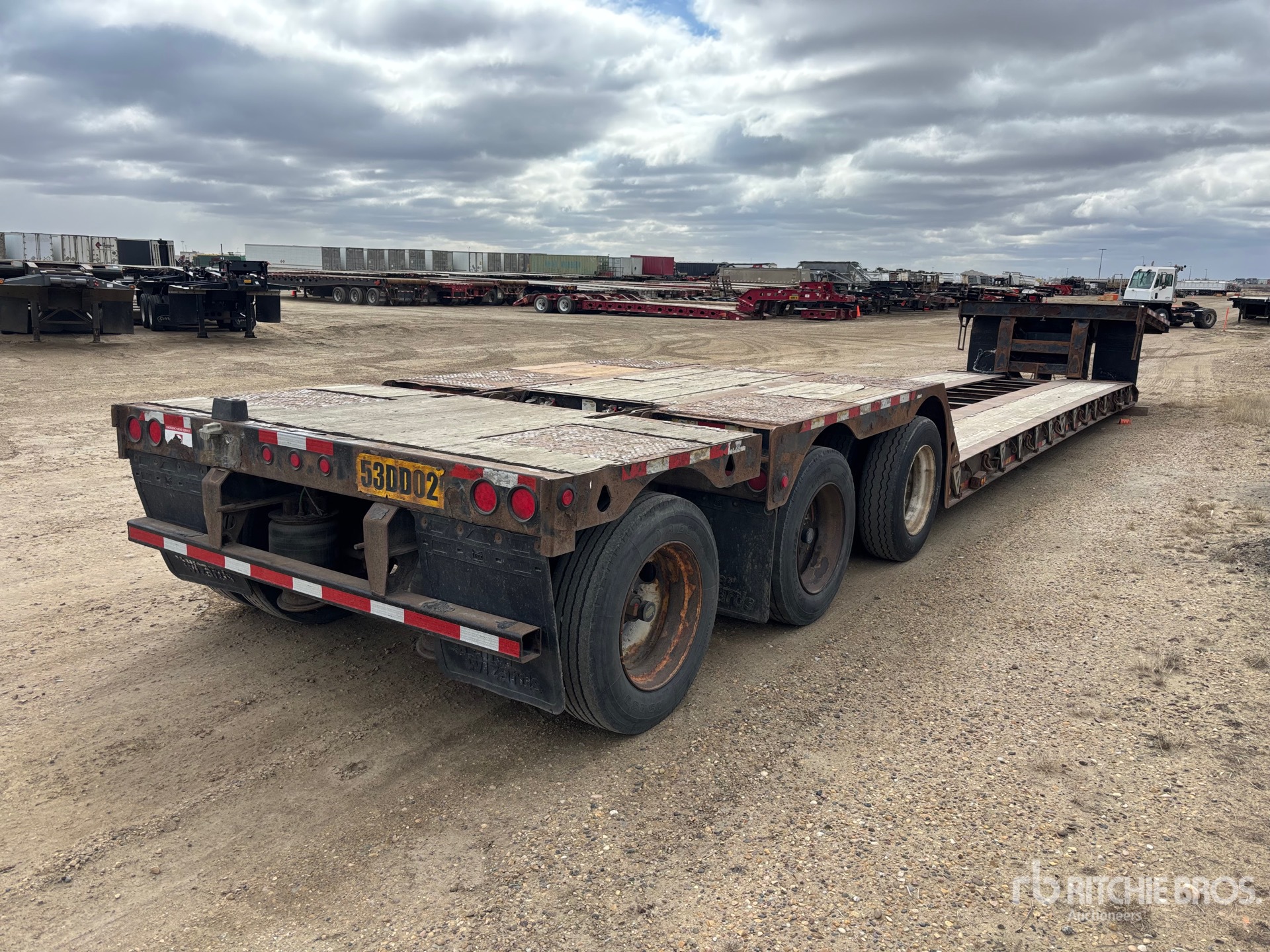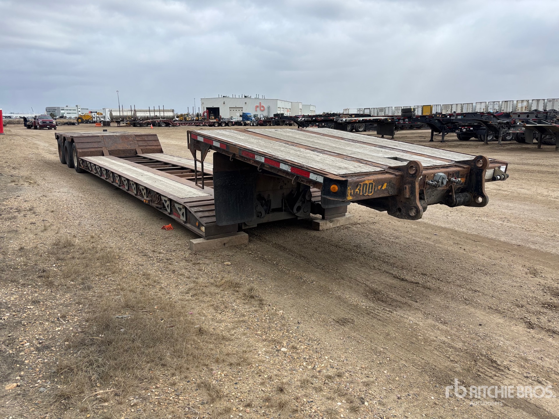 Col de cygne amovible mécanique, plateau principal de 28 pi x 102 po, plateau supérieur, plateau au-dessus des pneus, rallonges latérales repliables, suspension pneumatique, pré-équipé pour essieu de renfort