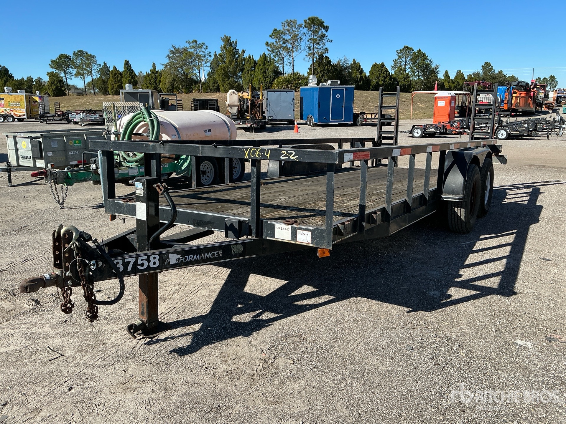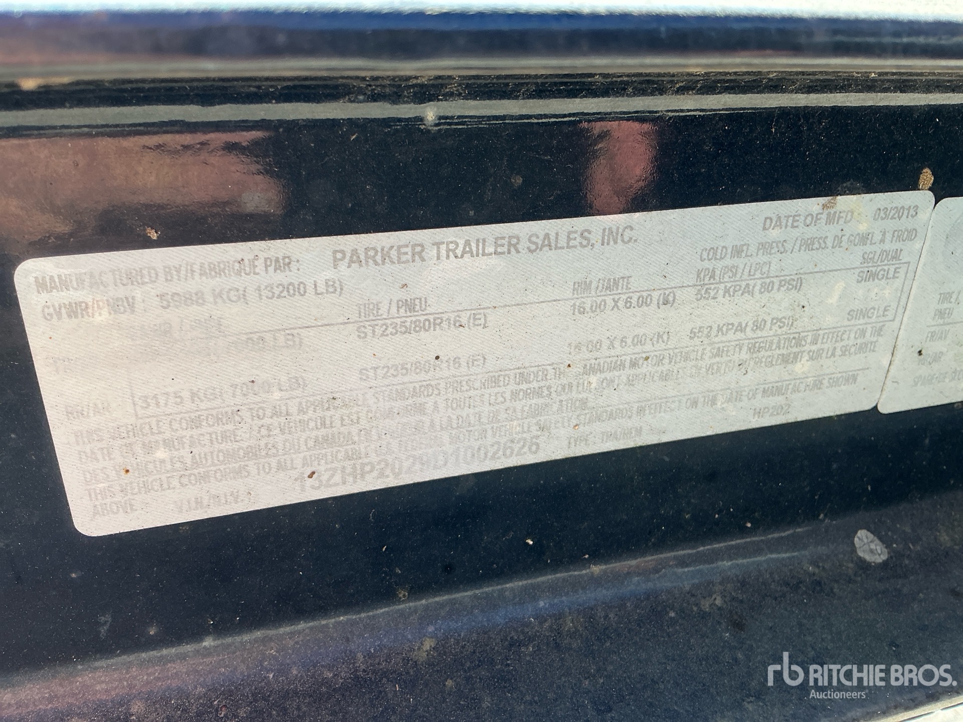 Attelage à boule, suspension à ressorts, freins électriques, largeur de plateau de 203 cm, largeur hors tout de 203 cm, rampe d'accès, plancher en bois, pneus 235/75R17.5, PTAC de 5 987 kg