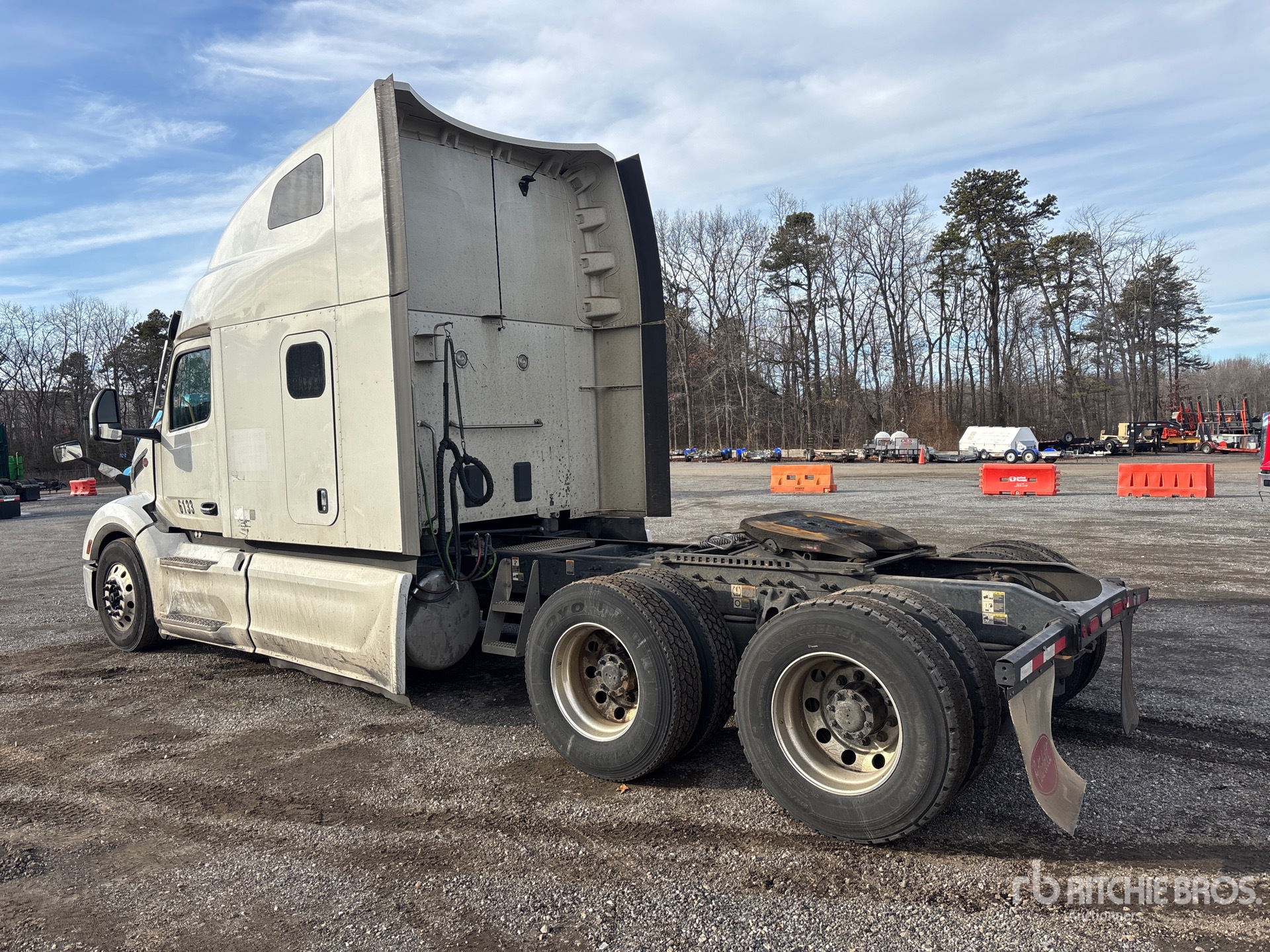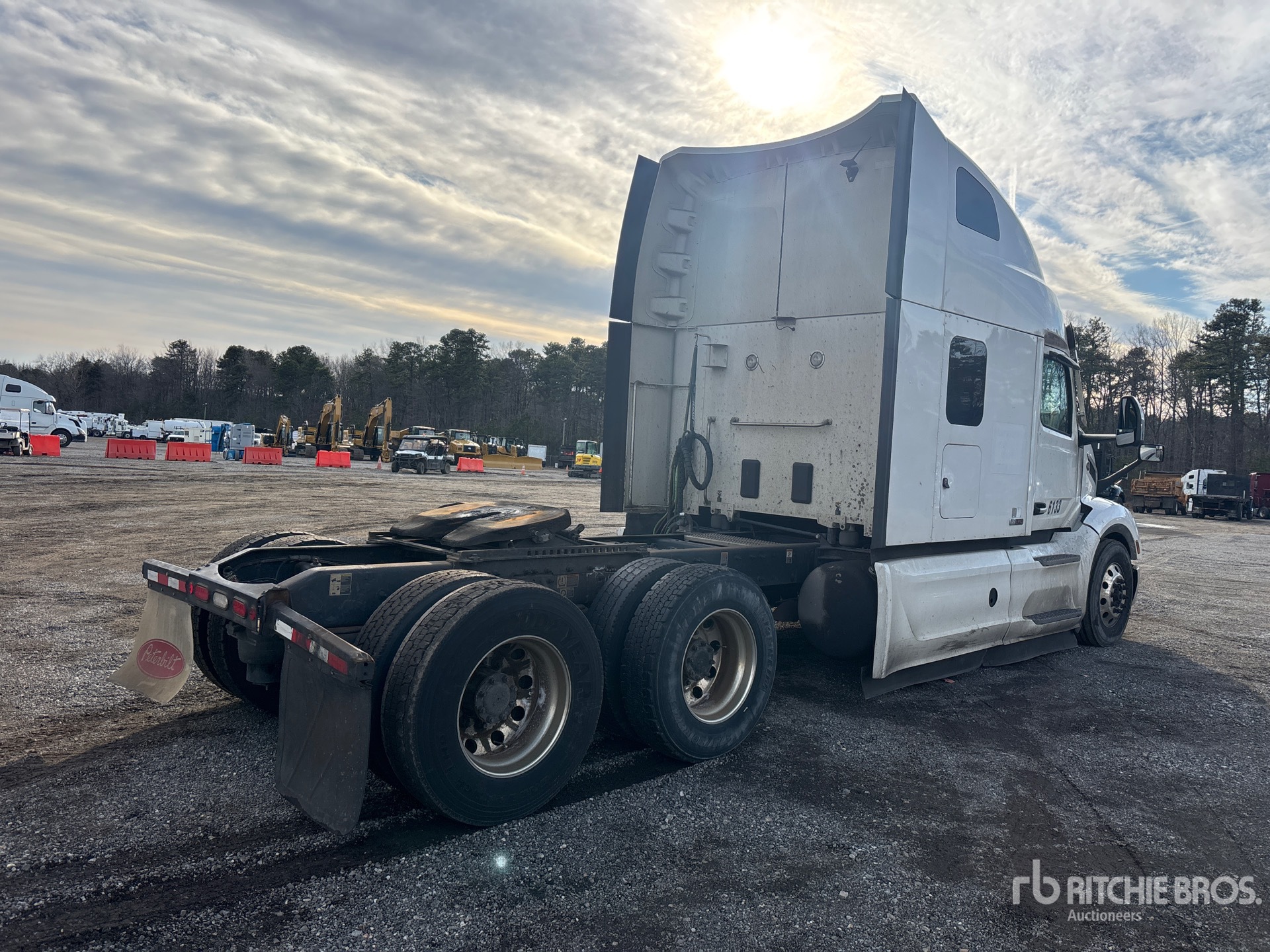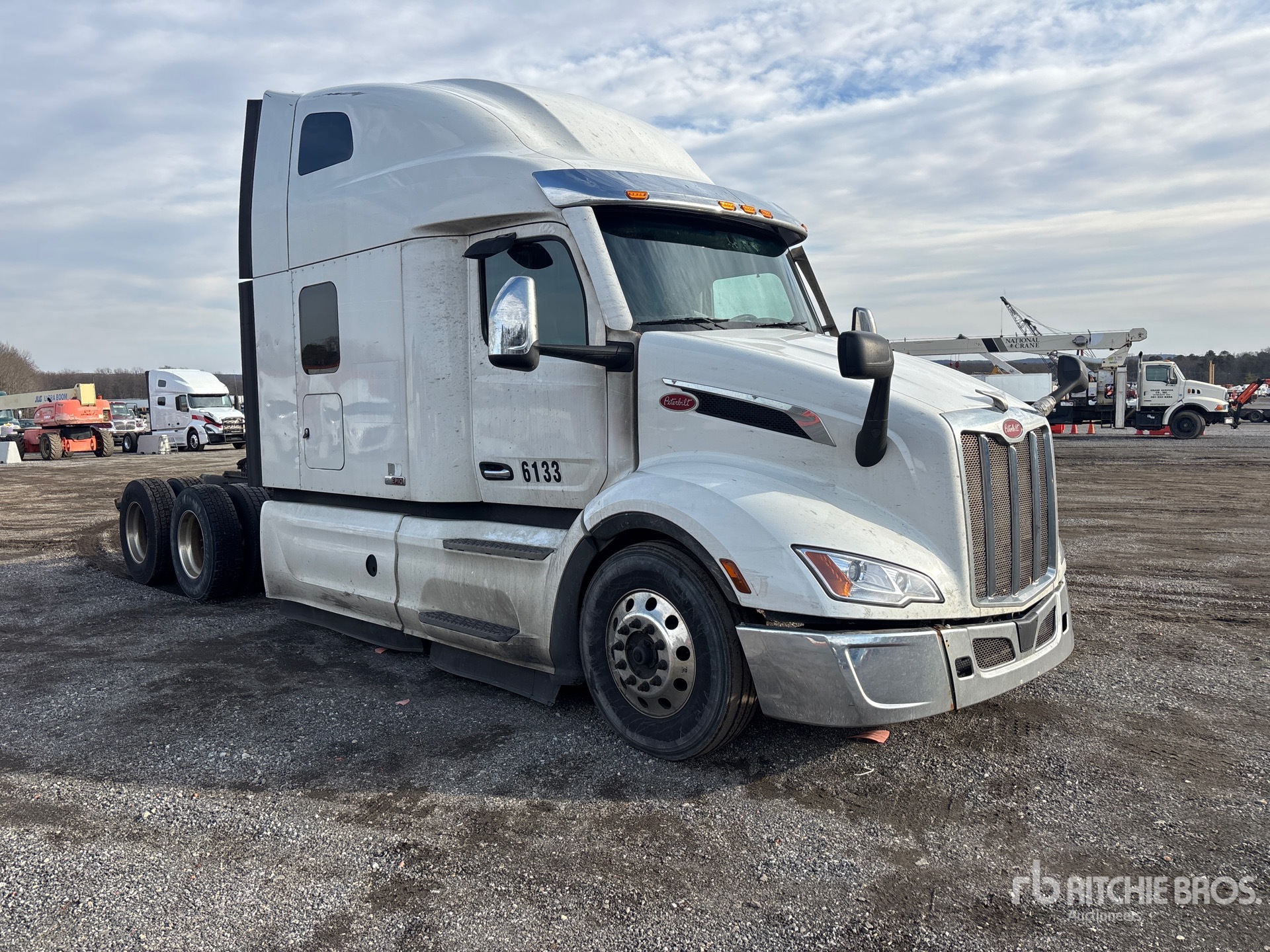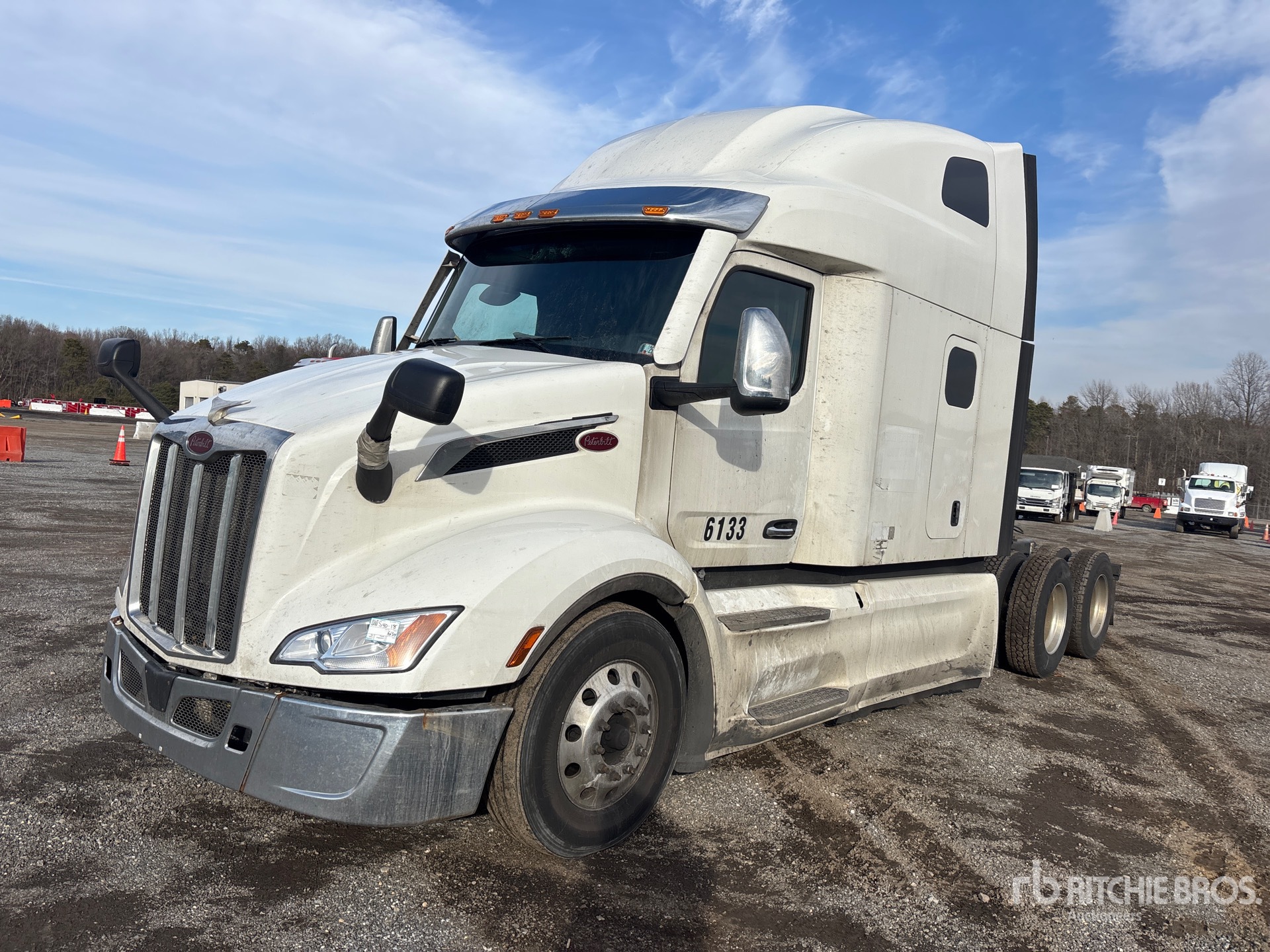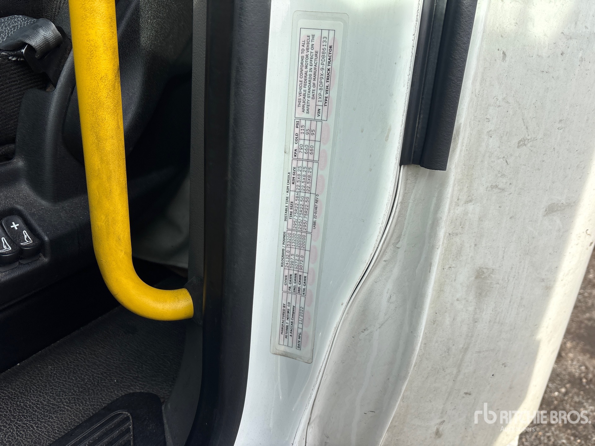 Moteur Paccar MX-13 de 510 ch, homologué EPA 2022, transmission automatisée Paccar PO-17F112C à 12 rapports, essieu avant de 5 987 kg, essieu arrière de 18 144 kg, PTAC de 24 114 kg, cabine couchette surélevée de 160 cm, empattement de 627 cm, suspension pneumatique, jantes en aluminium, pneus 295/75R22.5, sellette d'attelage coulissante pneumatique, double réservoir de carburant.