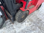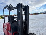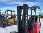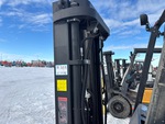 Mât à 3 sections, hauteur de levage maximale de 6 m (237 po), hauteur de mât abaissée de 2,1 m (82 po), fourches de 1 m (40 po), circuit hydraulique auxiliaire, translation latérale, 48 V, chargeur de batterie