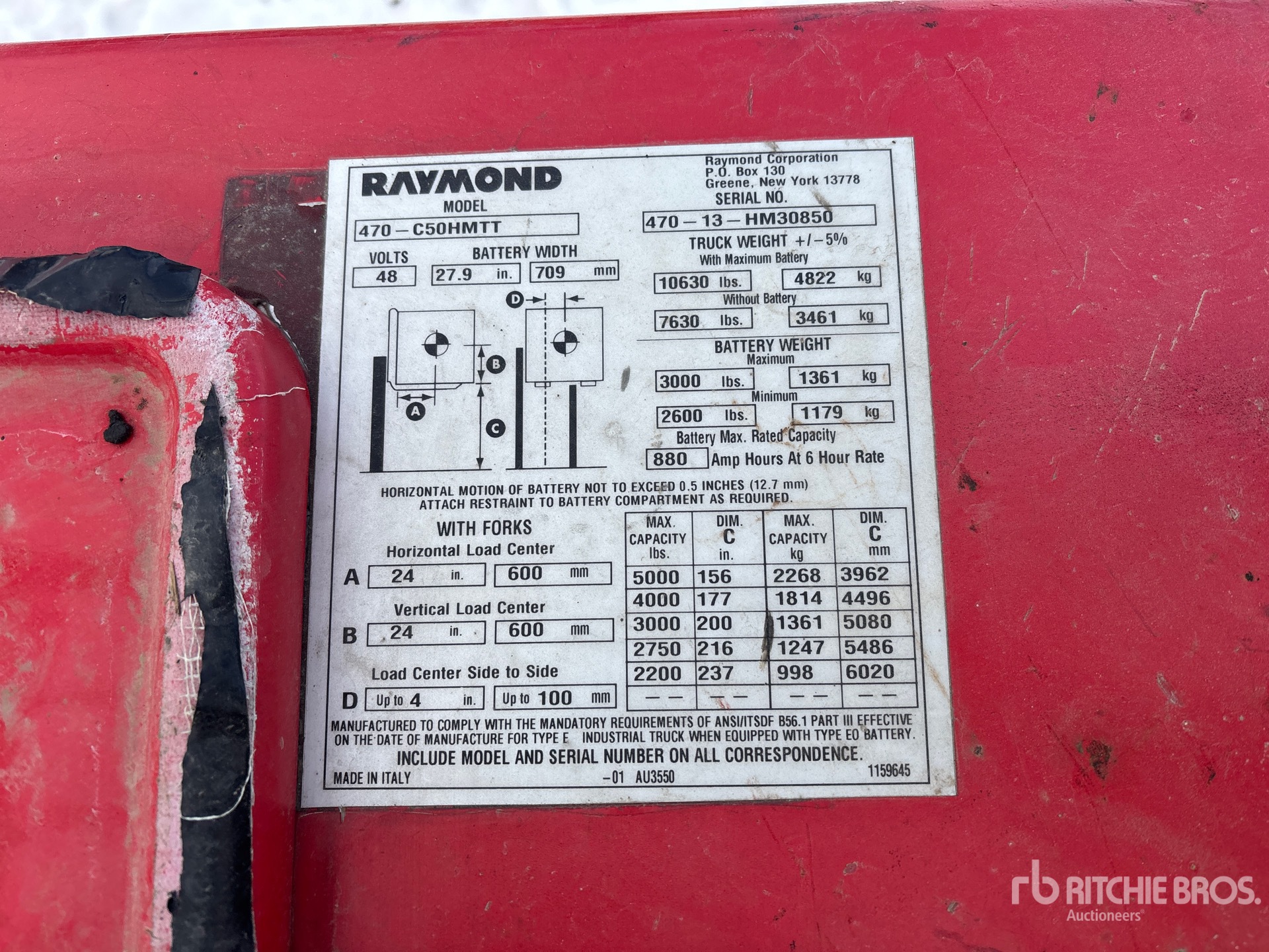 Les Informations détaillées de l’équipement sont d’une portée limitée, et les Encans Ritchie Bros. n’ont inspecté aucun autre aspect ou composant de l’équipement que ceux présentés expressément. Sauf indication précise, nous n’offrons aucune représentation ou garantie, officielle ou implicite, sur l’équipement ou ses composants, sans aucune limite de représentation ou de garantie en ce qui concerne la fonctionnalité, la conformité à toute norme de sécurité ou l’exigence de toute autorité ou agence de régulation en vigueur, l’adaptation à un quelconque usage, ou la valeur commerciale. Il vous est fortement conseillé d’effectuer votre propre inspection détaillée de l’équipement avant d’enchérir.