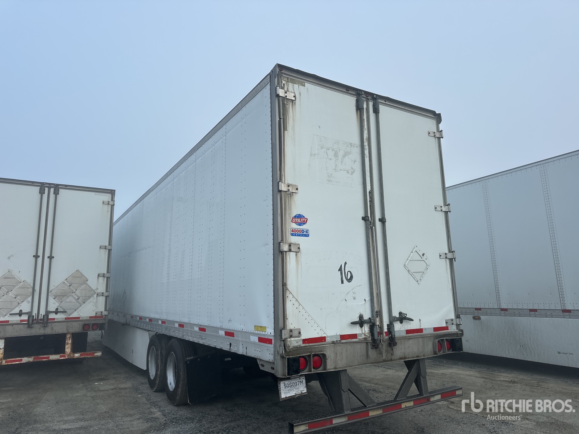 Situé sur la voie 41, emplacement 93, ce véhicule est équipé d'une suspension pneumatique coulissante, de jupes latérales, d'un plancher de bois franc, d'une porte battante, de pneus 295/75R22.5 et d'un PTAC de 65 000 lb.