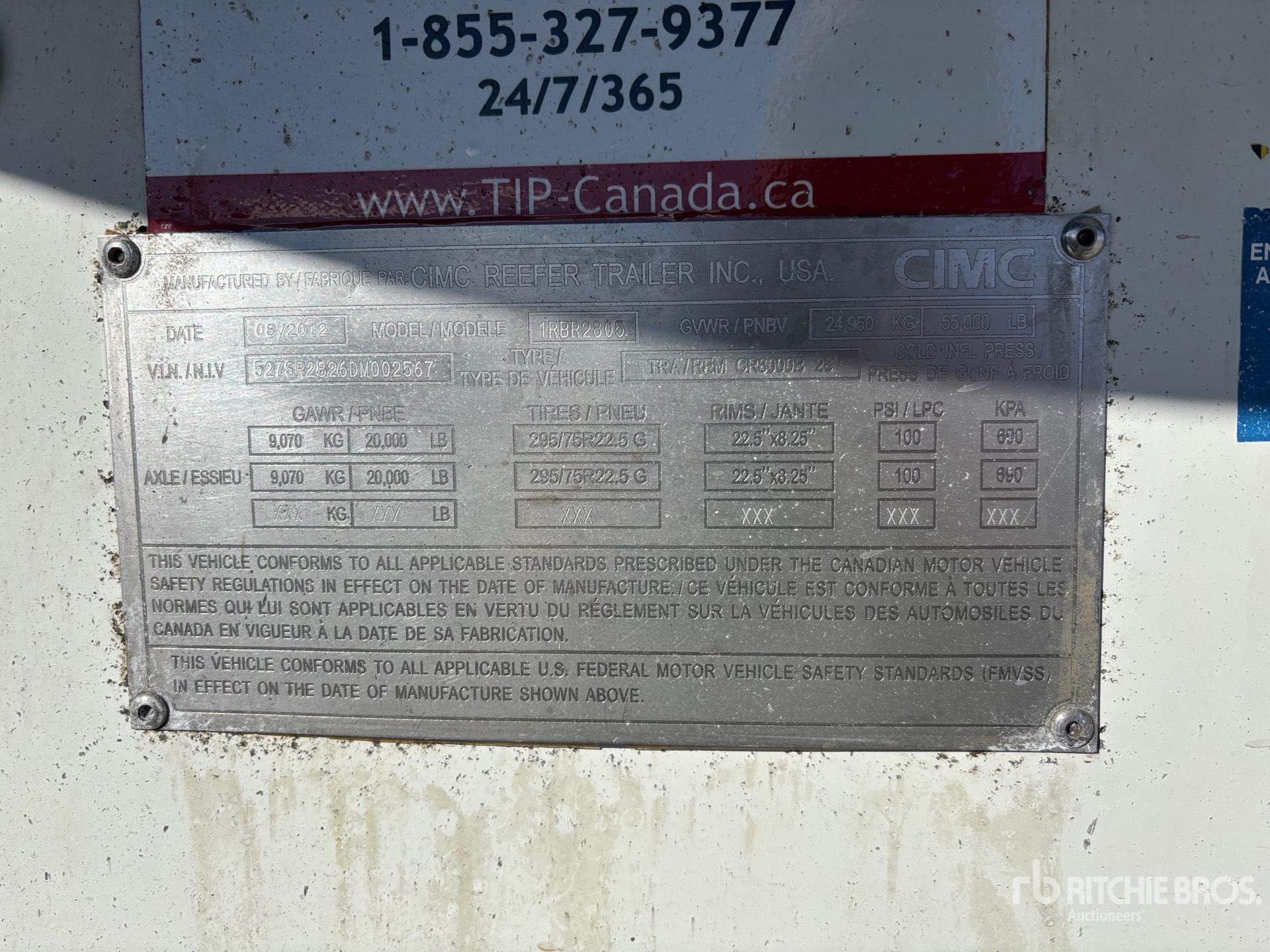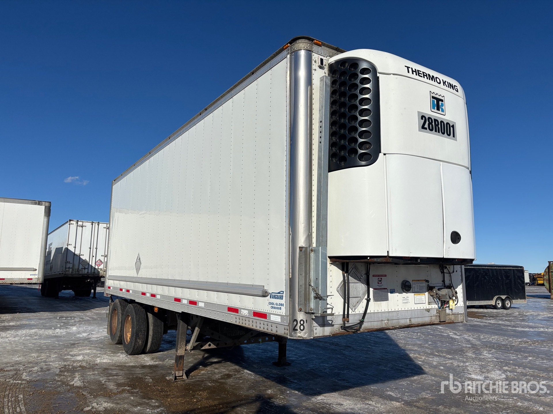 Ensemble frigorifique Thermo King, suspension pneumatique coulissante, attelage à anneau, plancher en aluminium, porte enroulable, pneus 295/75R22.5, PTAC de 24 958 kg (55 000 lb).