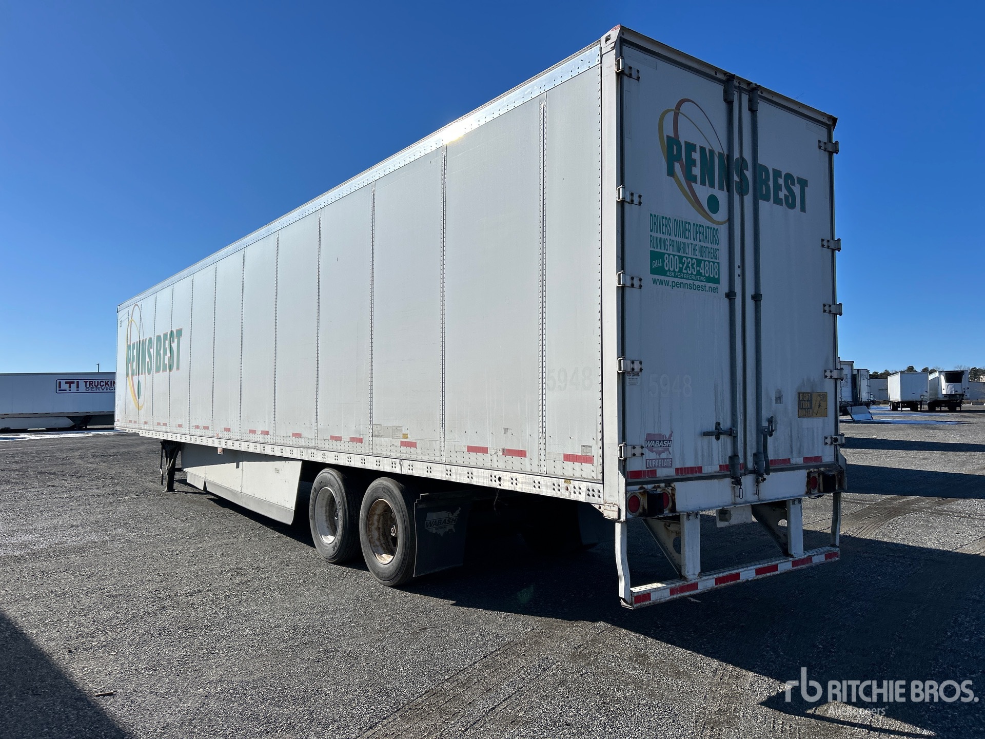 Suspension pneumatique, plancher de bois franc, porte battante, pneus 295/75R22.5, PNBV de 68 000 lb