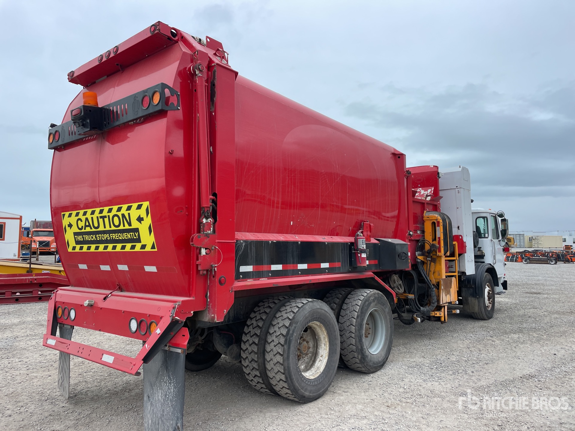 Situé sur la voie 35, emplacement 7, ce camion est équipé d'un moteur Cummins ISL au gaz naturel comprimé (GNC) de 320 ch, totalisant 3 681 heures de fonctionnement, d'une transmission automatique Allison à 6 vitesses, d'un essieu avant de 9 072 kg (20 000 lb), d'essieux arrière de 18 144 kg (40 000 lb), d'essieux moteurs Meritor RT-46-160, d'un rapport de pont de 5,63:1, d'un PTAC de 29 946 kg (66 000 lb), de pneus 315/80R22.5, d'une suspension à balancier en caoutchouc, d'un empattement de 5,94 m (234 po) et d'une carrosserie de la collection Labrie.