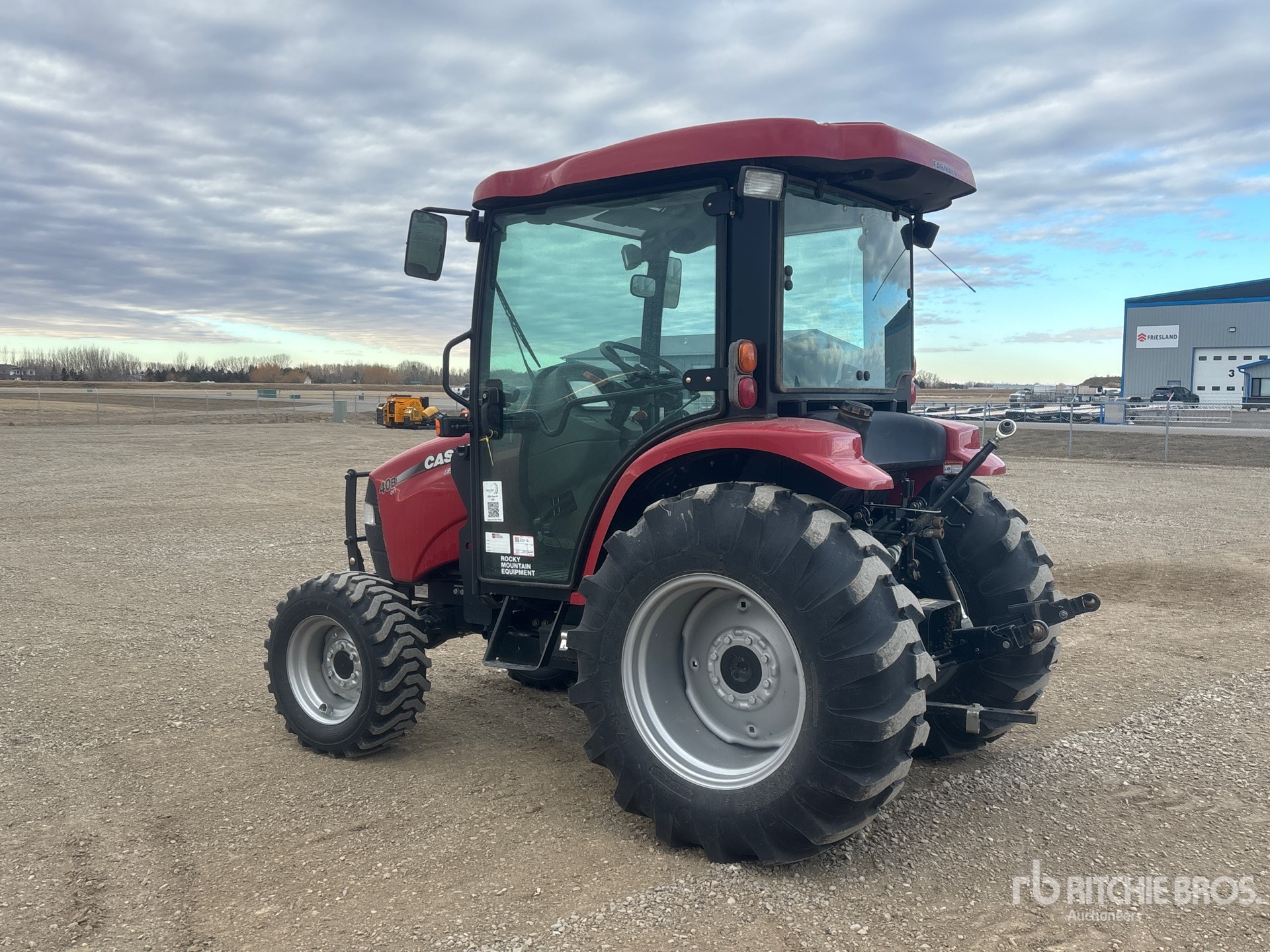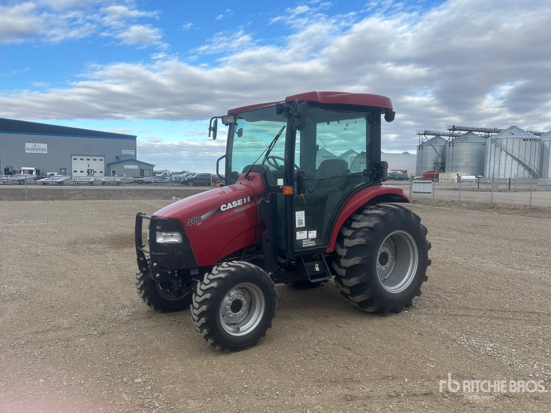 Cabine fermée, climatisation, transmission à variation continue (CVT), marche arrière à gauche, homologation EPA américaine 2013, conforme aux normes CARB, 1 distributeur hydraulique arrière, prise de force 540 tr/min, attelage 3 points, barre de traction, pneus avant 10-16.5, pneus arrière 17.5L-24