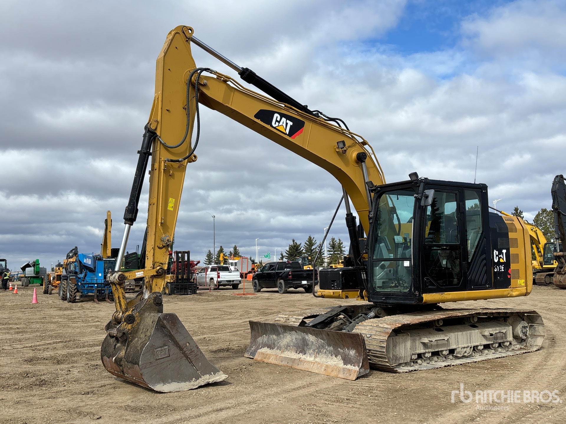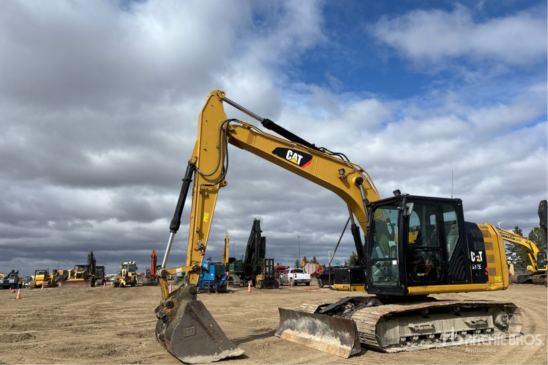 Climatisation, sélecteur de mode de conduite, caméra de recul, homologation EPA américaine 2013, conforme aux normes CARB, vanne d'arrêt d'air positive, bras de 2,90 m, circuit hydraulique auxiliaire, lame de remblayage, chenilles à triple crampon de 70 cm, attache rapide manuelle, godet de nettoyage de 137 cm