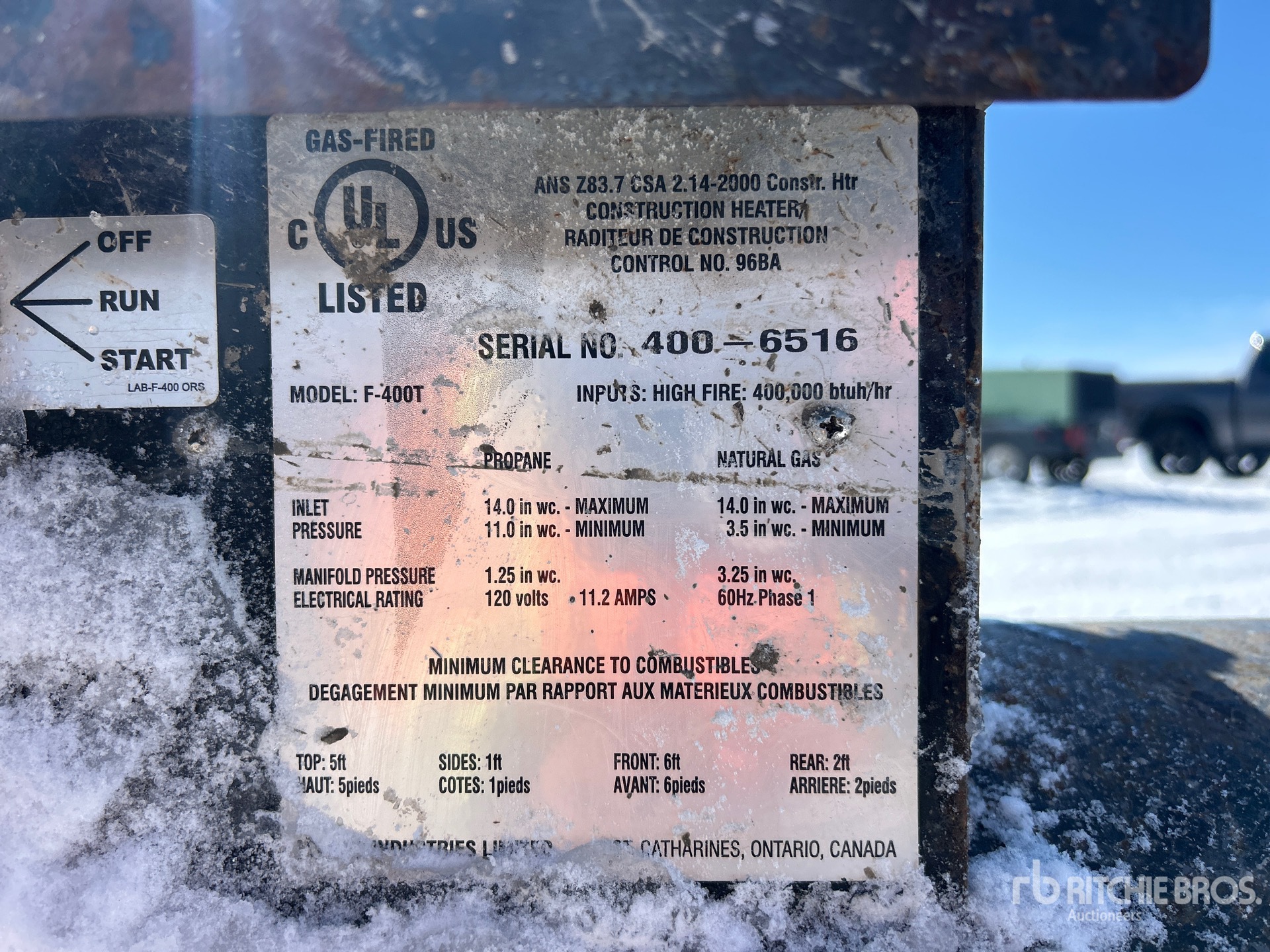 Les Informations détaillées de l’équipement sont d’une portée limitée, et les Encans Ritchie Bros. n’ont inspecté aucun autre aspect ou composant de l’équipement que ceux présentés expressément. Sauf indication précise, nous n’offrons aucune représentation ou garantie, officielle ou implicite, sur l’équipement ou ses composants, sans aucune limite de représentation ou de garantie en ce qui concerne la fonctionnalité, la conformité à toute norme de sécurité ou l’exigence de toute autorité ou agence de régulation en vigueur, l’adaptation à un quelconque usage, ou la valeur commerciale. Il vous est fortement conseillé d’effectuer votre propre inspection détaillée de l’équipement avant d’enchérir.
