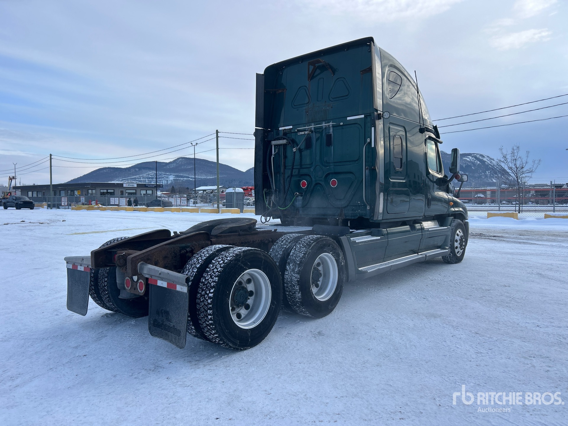 Moteur Detroit DD15 de 505 ch, homologué EPA 2013, 11 714 heures de fonctionnement, boîte de vitesses manuelle Eaton Fuller RTLO-16913A à 13 rapports, PTAC de 23 745 kg, frein moteur, blocage de différentiel, cabine couchette de 152 cm, lits superposés, empattement de 583 cm, suspension pneumatique, jantes extérieures en aluminium, pneus avant 275/80R22.5, pneus arrière 275/80R22.5, sellette d'attelage coulissante pneumatique, double réservoir de carburant.