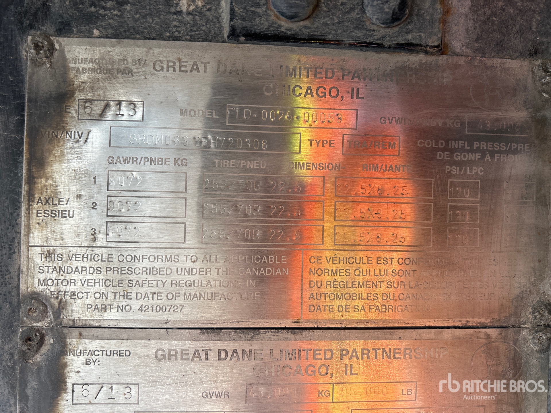 Les Informations détaillées de l’équipement sont d’une portée limitée, et les Encans Ritchie Bros. n’ont inspecté aucun autre aspect ou composant de l’équipement que ceux présentés expressément. Sauf indication précise, nous n’offrons aucune représentation ou garantie, officielle ou implicite, sur l’équipement ou ses composants, sans aucune limite de représentation ou de garantie en ce qui concerne la fonctionnalité, la conformité à toute norme de sécurité ou l’exigence de toute autorité ou agence de régulation en vigueur, l’adaptation à un quelconque usage, ou la valeur commerciale. Il vous est fortement conseillé d’effectuer votre propre inspection détaillée de l’équipement avant d’enchérir.
