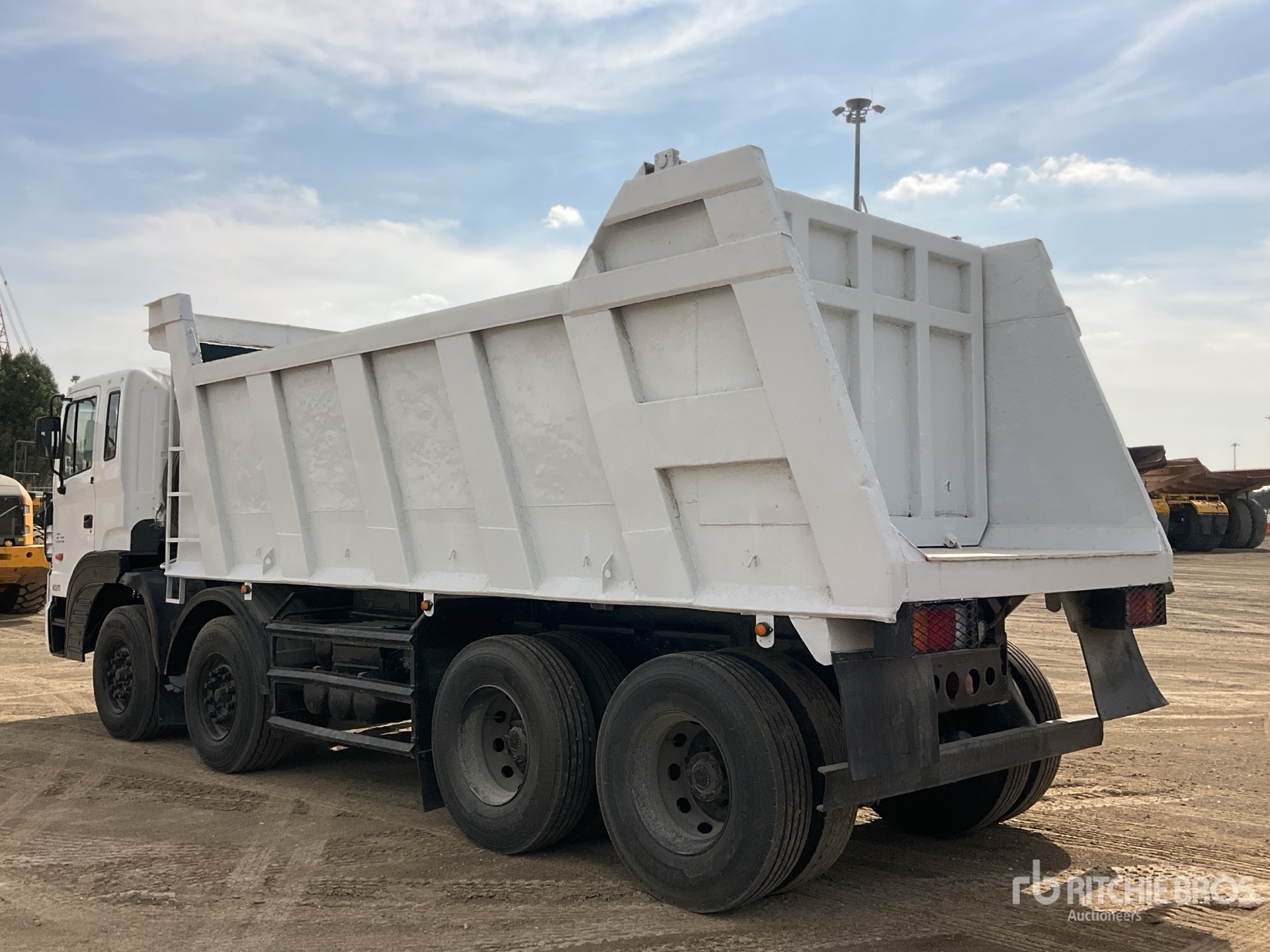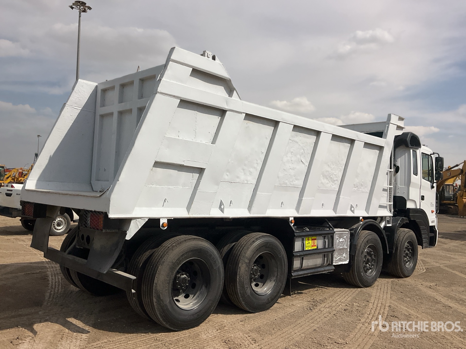 Moteur diesel 6 cylindres, frein sur échappement, boîte de vitesses manuelle à 16 rapports, double blocage de différentiel, cabine couchette à toit plat de 650 mm, pneus avant 385/65R22.5, pneus arrière 12R22.5, carrosserie en acier de 6 250 mm de long sur 1 500 mm de haut