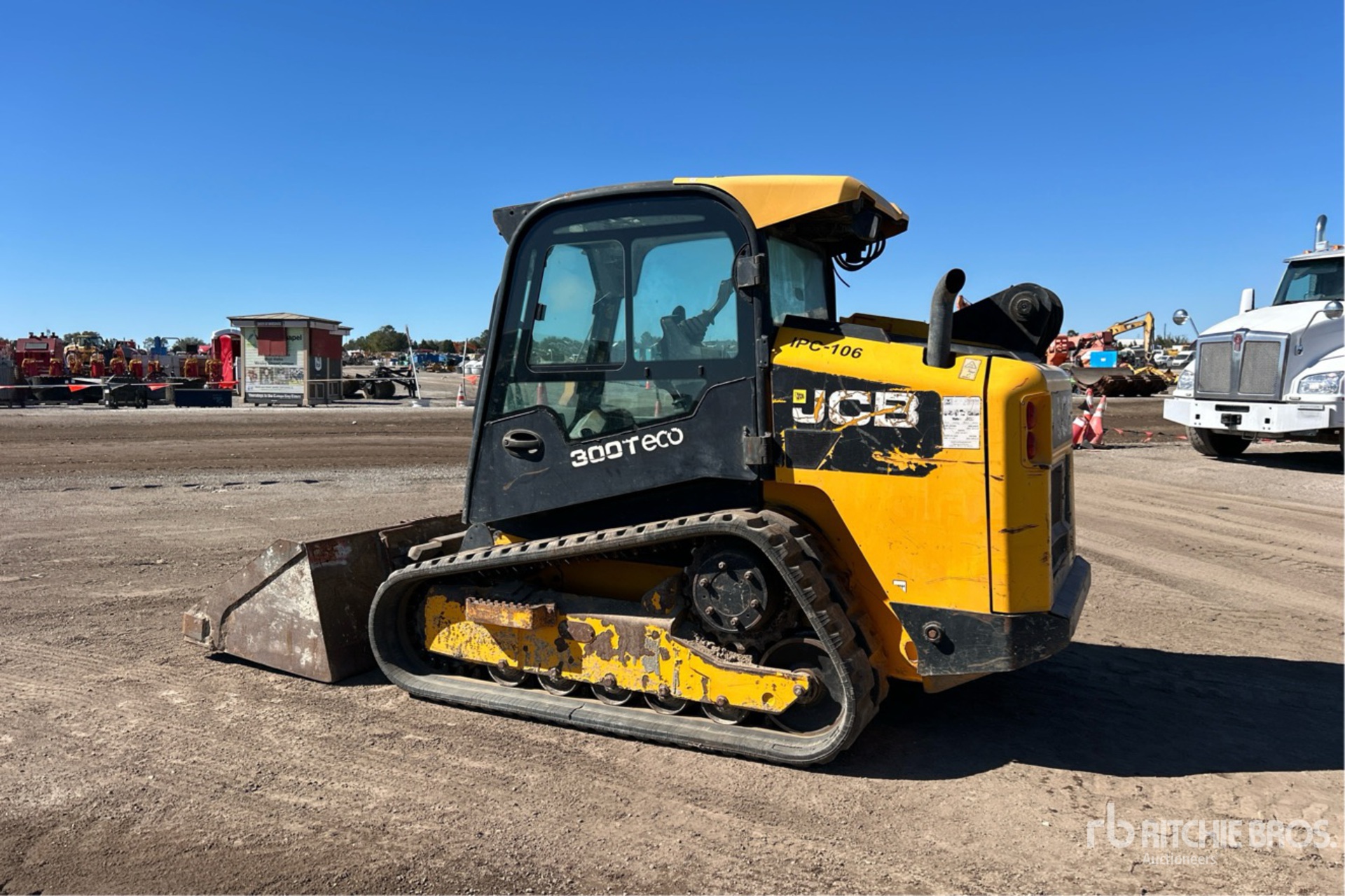 Situé à l'emplacement 213, cabine fermée, direction par joystick, sélecteur de mode de commande, homologation EPA américaine 2018, conforme aux normes CARB, chenilles de 44,5 cm (17,5 po), kit électrique à 9 broches, coupleur électrique, godet de 2 m (79 po).
