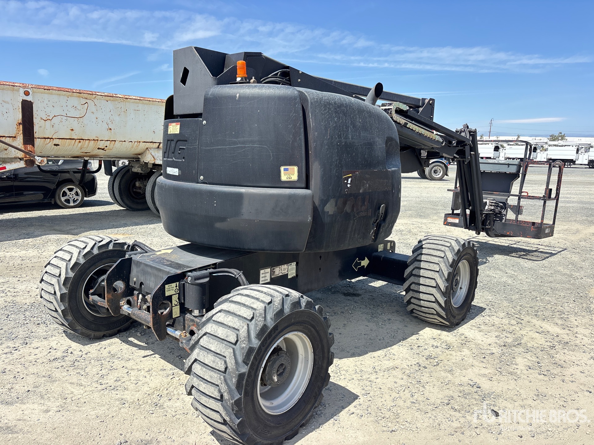 Hauteur maximale de la plateforme : 4,57 m (15 pi), capacité de charge maximale : 227 kg (500 lb), flèche, alimentation électrique de la plateforme, moteur à essence à 4 cylindres, pneus remplis de mousse 38 x 15,50-16,5
