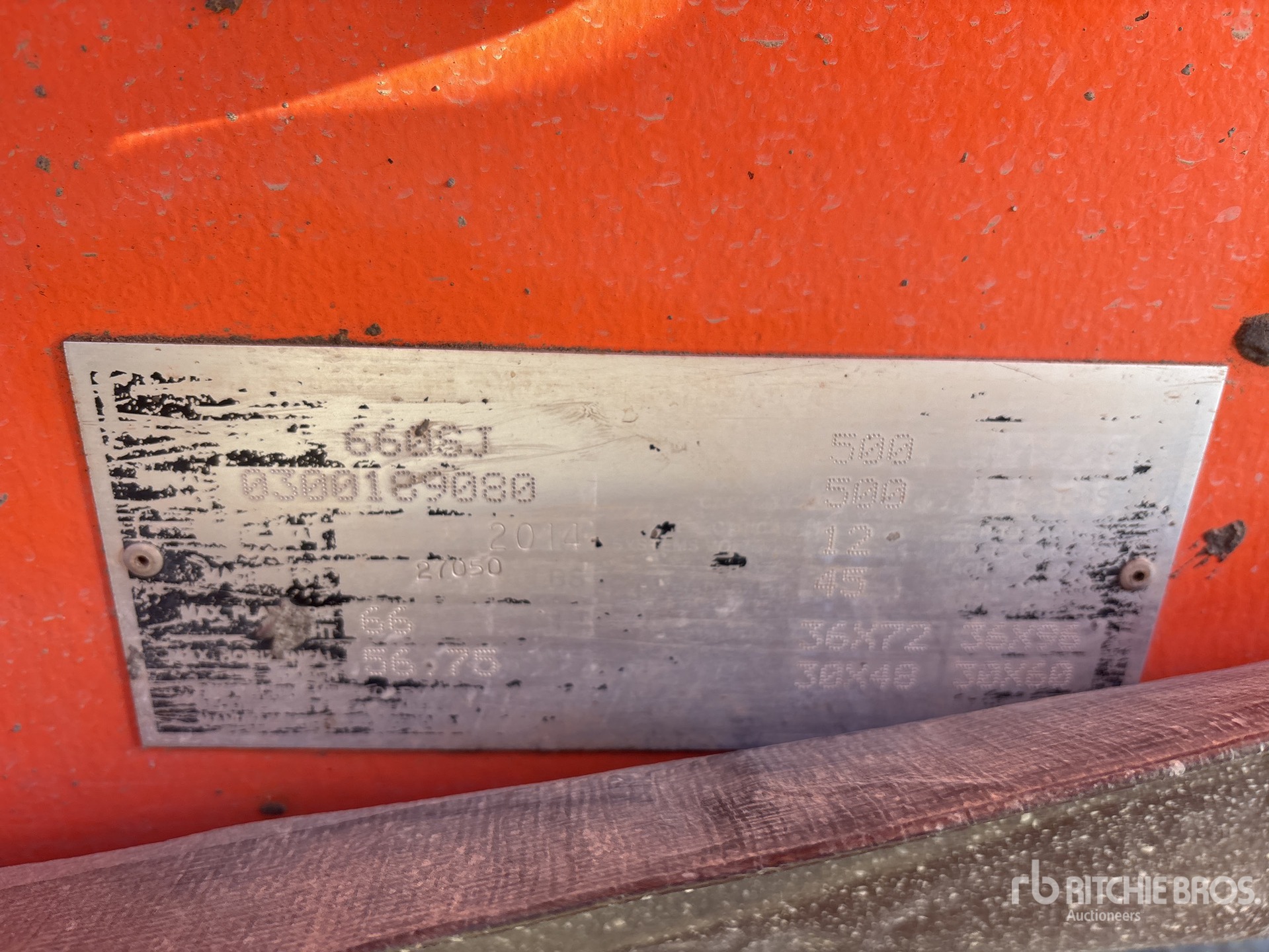 Les Informations détaillées de l’équipement sont d’une portée limitée, et les Encans Ritchie Bros. n’ont inspecté aucun autre aspect ou composant de l’équipement que ceux présentés expressément. Sauf indication précise, nous n’offrons aucune représentation ou garantie, officielle ou implicite, sur l’équipement ou ses composants, sans aucune limite de représentation ou de garantie en ce qui concerne la fonctionnalité, la conformité à toute norme de sécurité ou l’exigence de toute autorité ou agence de régulation en vigueur, l’adaptation à un quelconque usage, ou la valeur commerciale. Il vous est fortement conseillé d’effectuer votre propre inspection détaillée de l’équipement avant d’enchérir.