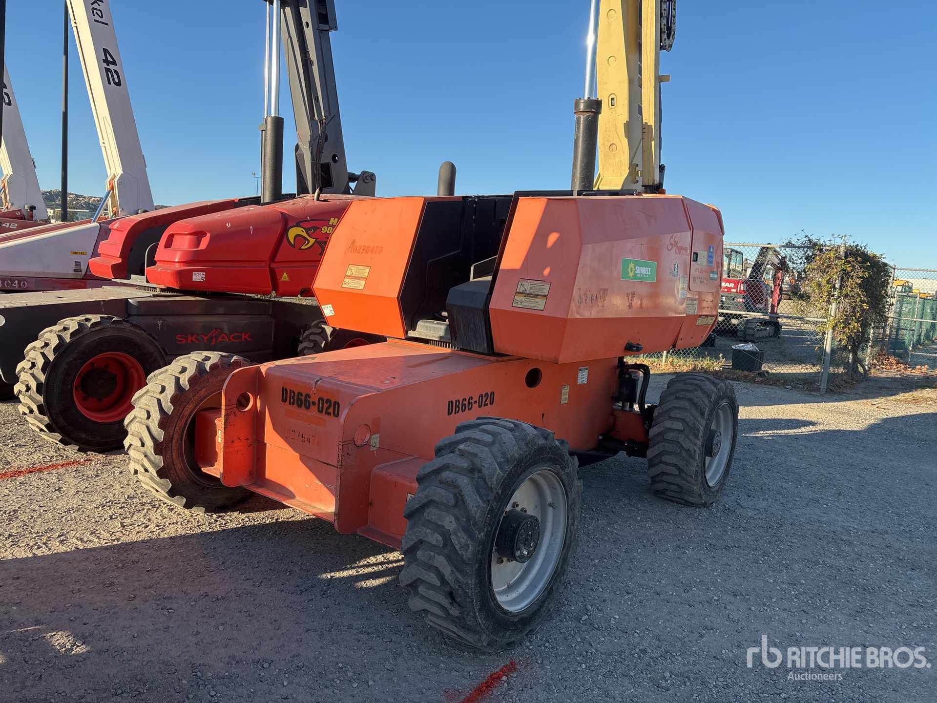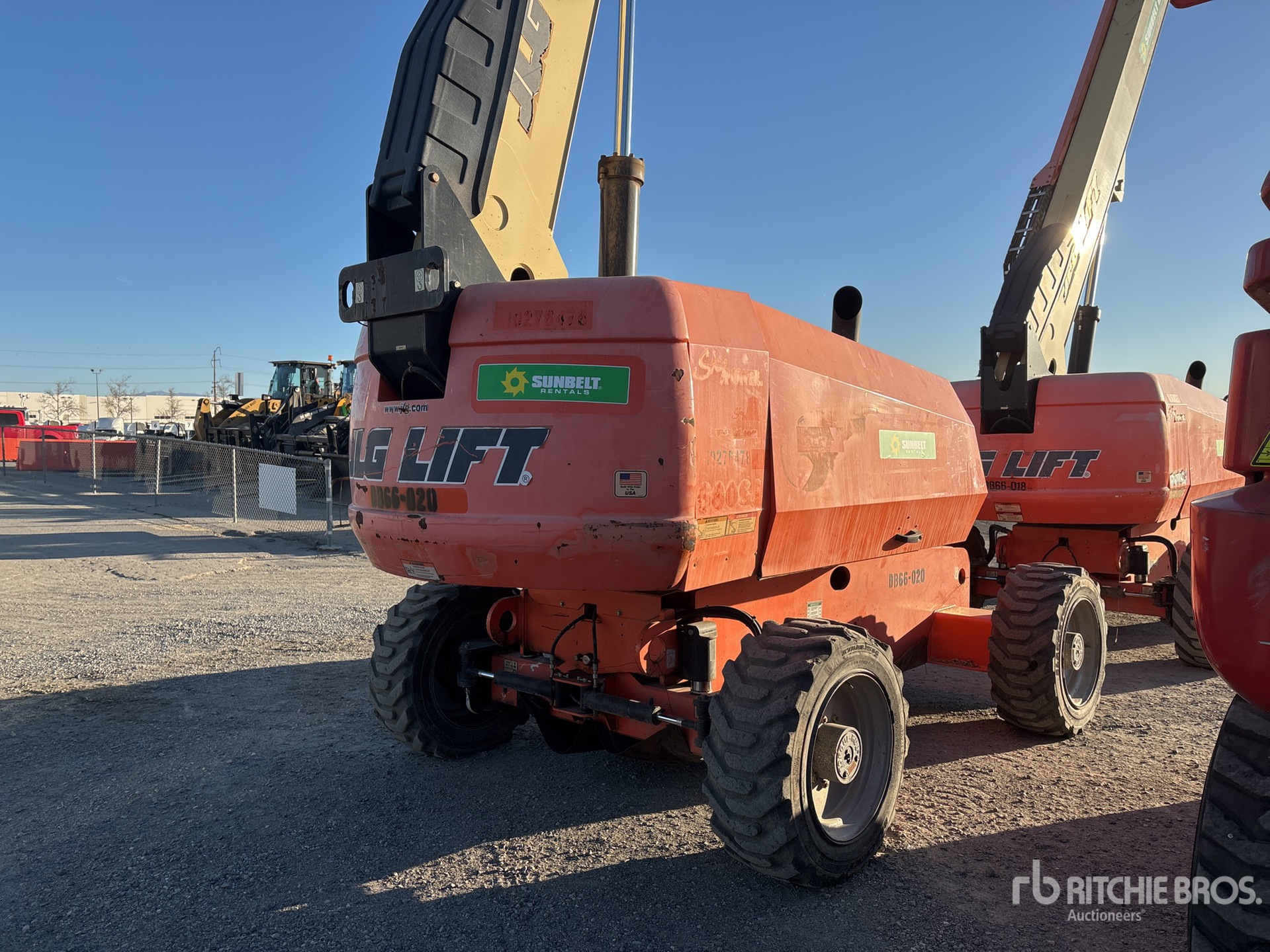 Hauteur maximale de la plateforme : 20 m (66 pi), capacité de charge maximale : 25 kg (55 lb), flèche, alimentation électrique de la plateforme, pneus 39 x 15-22,5