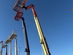 Les principaux composants sont en place et opérationnels comme indiqué. D'autres bras articulés se lèvent à proximité, mais ne peuvent pas abaisser la nacelle.