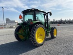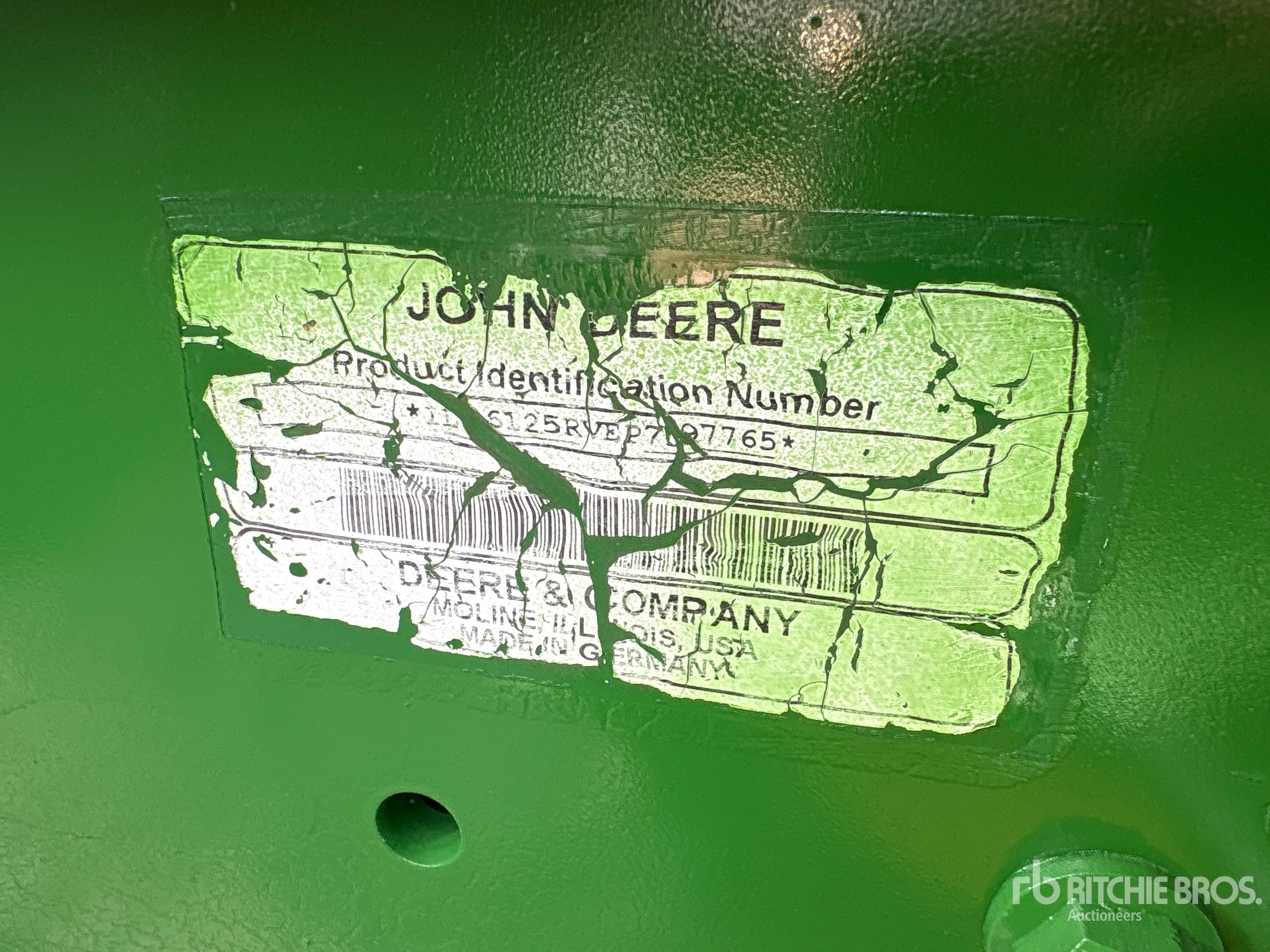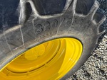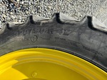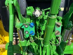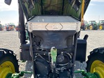Cabine fermée, climatisation, marche arrière à gauche, homologation EPA américaine 2014, nécessite un liquide d'échappement diesel, masses avant, 3 distributeurs hydrauliques arrière, attelage 3 points, pneus avant 320/85R28, pneus arrière 320/90R42